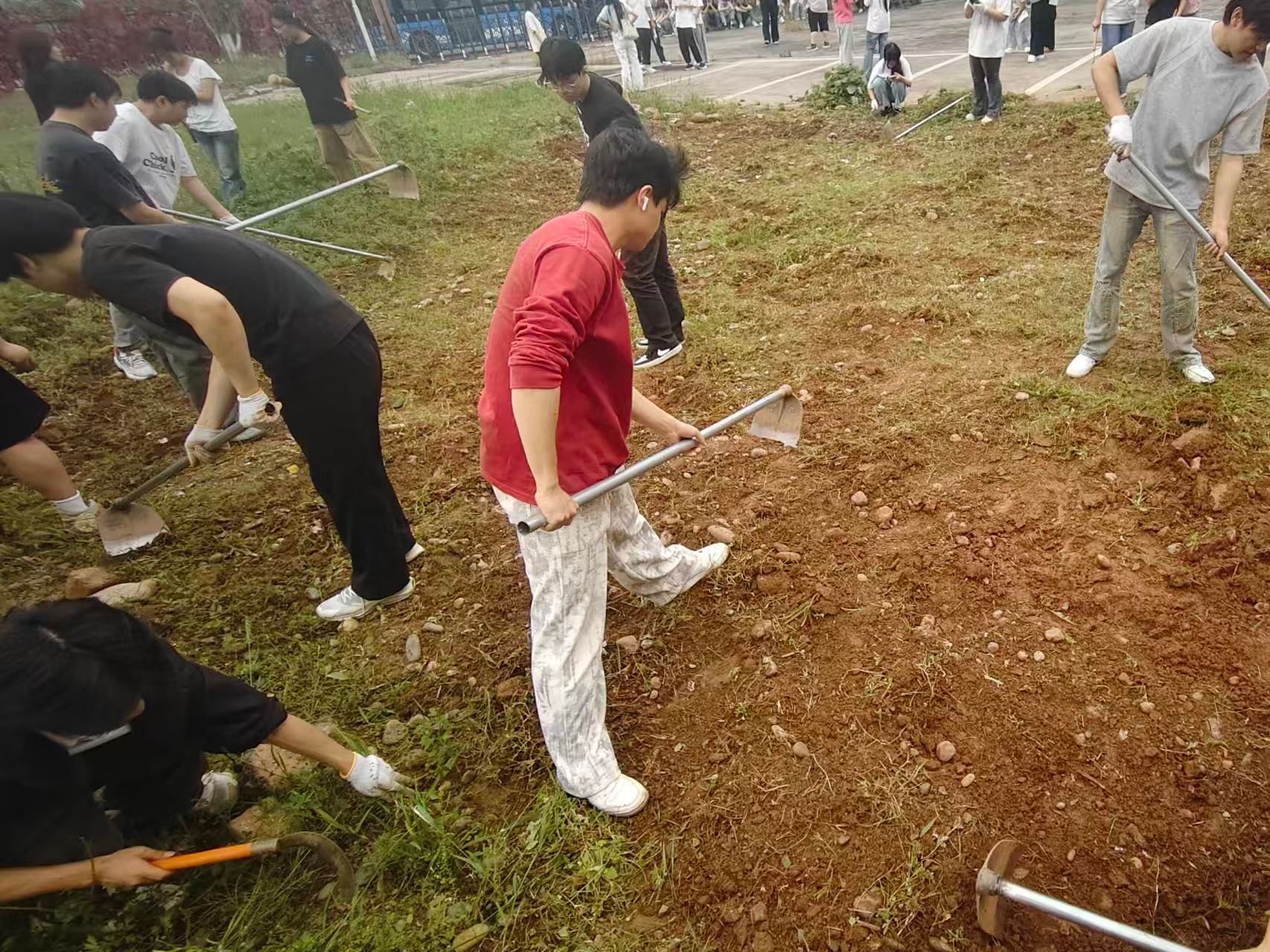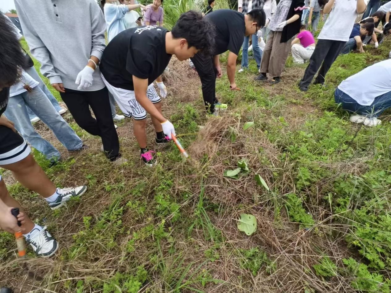 劳动现场,师生齐上阵、协作共劳作。同学们手持工具,认真完成除草、松土、清理杂物等劳动任务,不怕脏、不怕累,以饱满热情投入实践。在亲手劳作与团队配合中,大家真切体会到劳动的价值与艰辛,进一步增强了动手能力、责任意识与集体凝聚力,实现从知识学习到实践体验的有效转化。