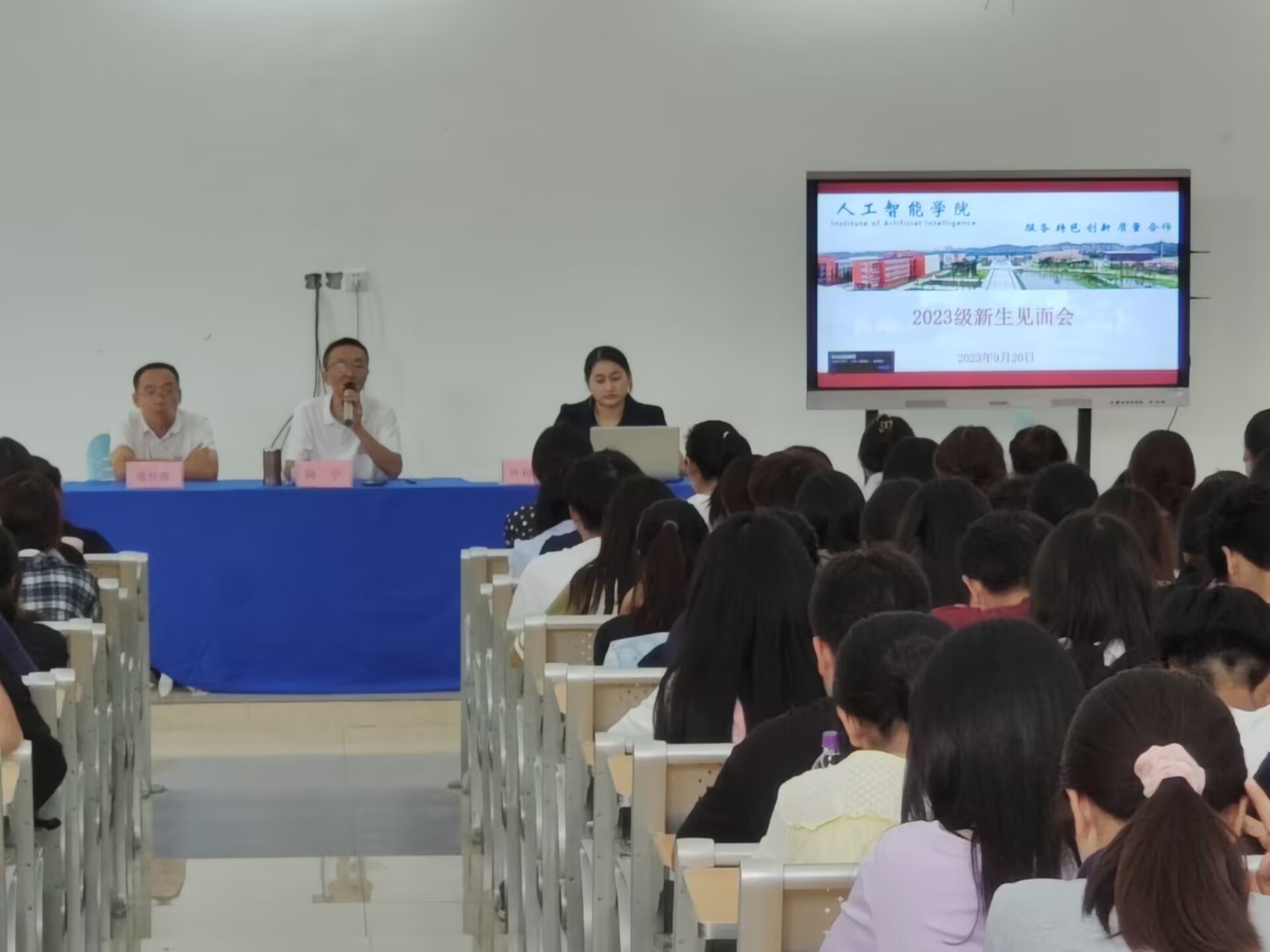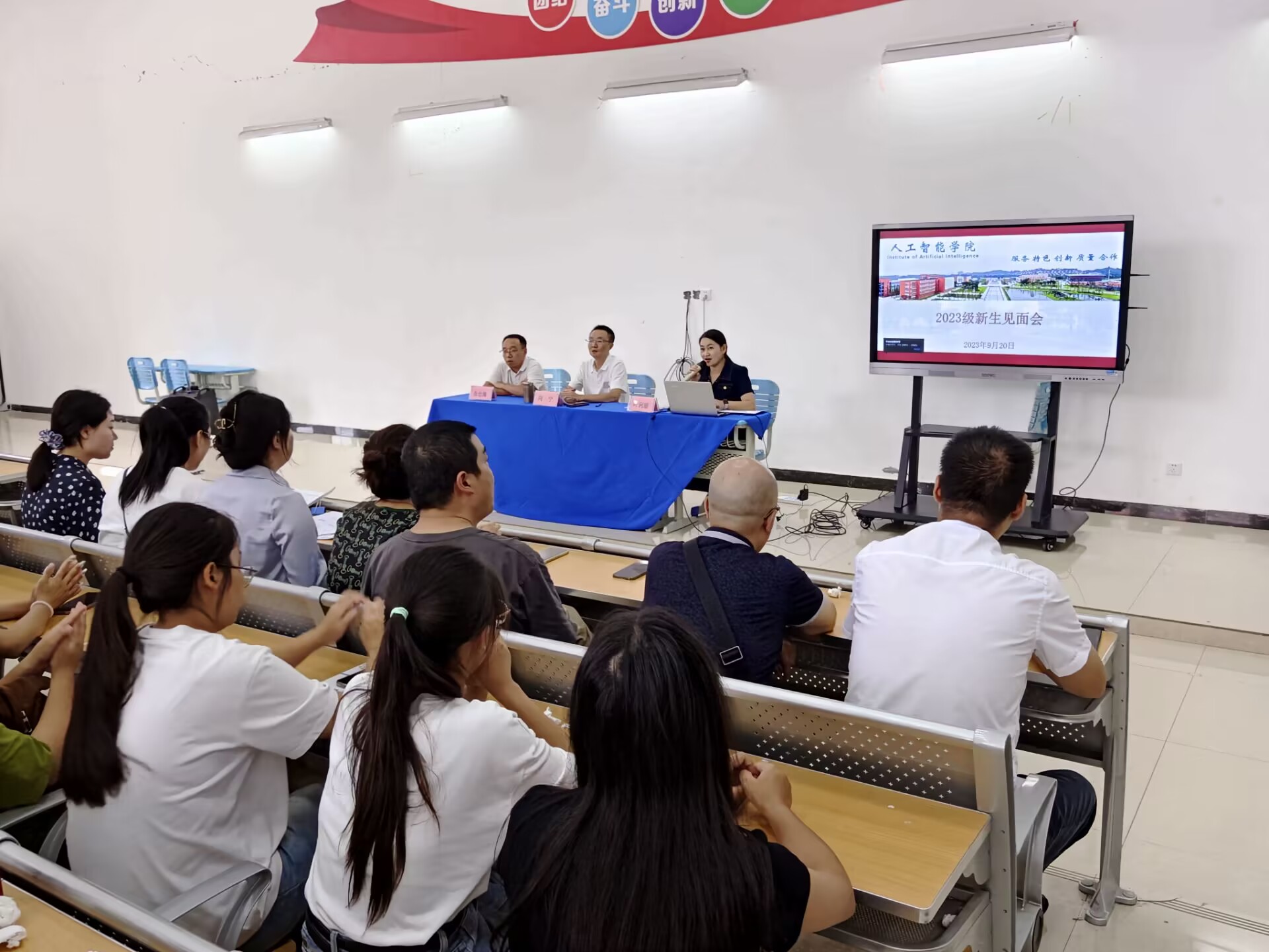 为帮助2023级新生尽快转变身份,适应大学生活,明确学习目标,人工智能学院于9月20日13:00在教学楼2B107开展23级新生见面会,参会人员有:人工智能学院院长向宁、人工智能学院副院长张仕海、人工智能学院专职副书记叶利丽、人工智能学院全体行政人员、在校班辅导员及人工智能学院23级全体在校学生。本次见面会由专职副书记叶利丽主持。