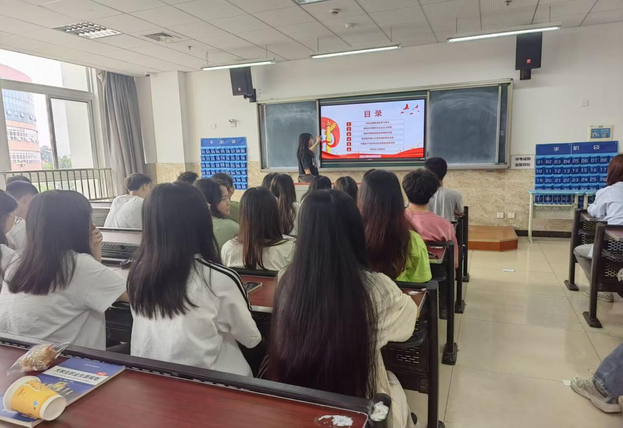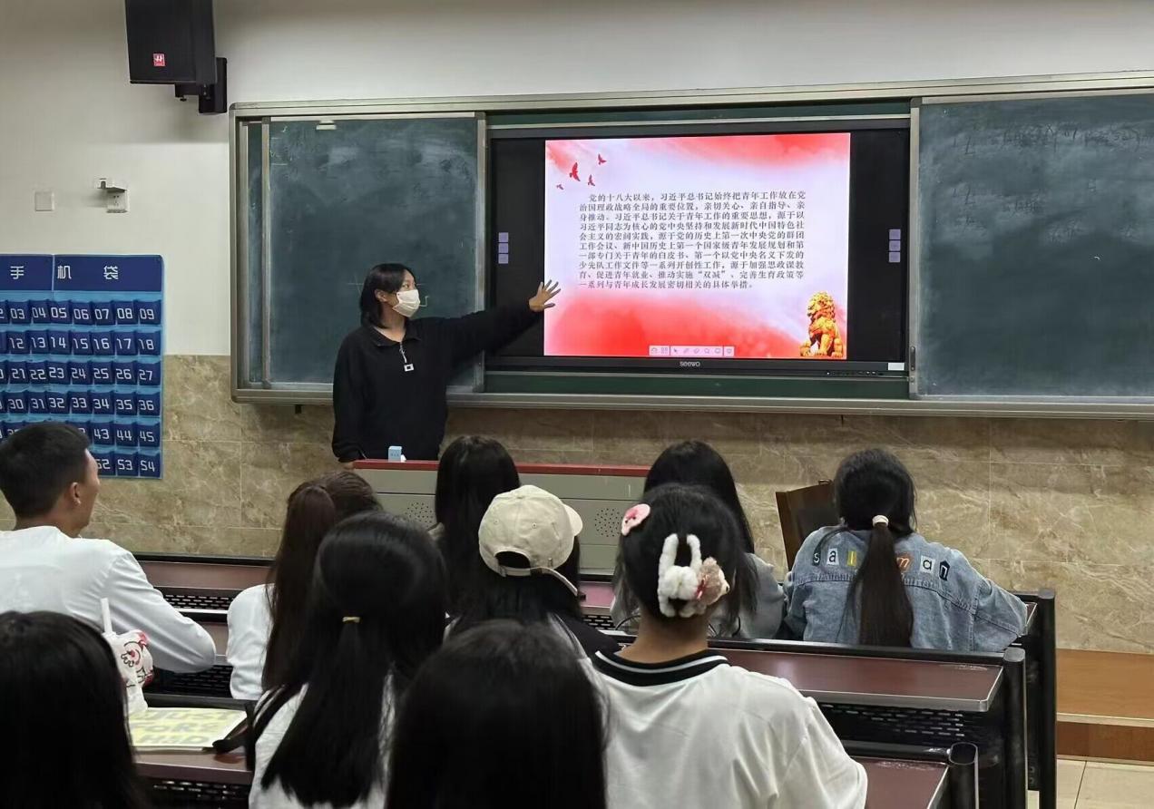 活动开始,由各班团支书向同学们介绍习近平总书记在同团中央新一届领导班子成员集体谈话时的重要讲话精神:“广大青年志愿者组织要把学习宣传贯彻习近平总书记重要讲话精神,作为当前和今后一个时期的首要政治任务,深刻领会“牢牢把握新时代中国青年运动的主题”的内在逻辑、“充分激发新时代青年在中国式现代化建设中挺膺担当”的实践要求。”随后通过PPT展开学习。