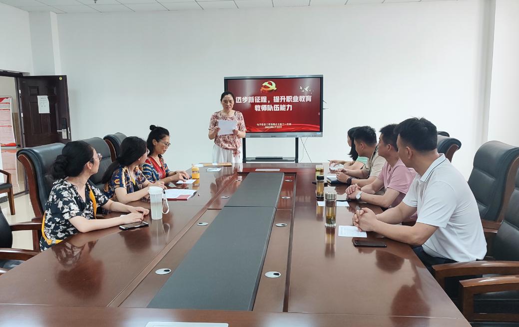 根据市委组织部《乐山市基层党建工作6月份任务清单》要求,按照学院组织部《关于规范开展6月主题党日活动的通知》(乐职委组通[2022]6号)文件精神,结合电信系教工一支部工作实际,2022年6月22日13:00,电信系教工一支部在1A310组织开展了“ 迈步新征程,提升职业教育教师队伍能力”主题党日活动,活动由支部书记张素芬主持。