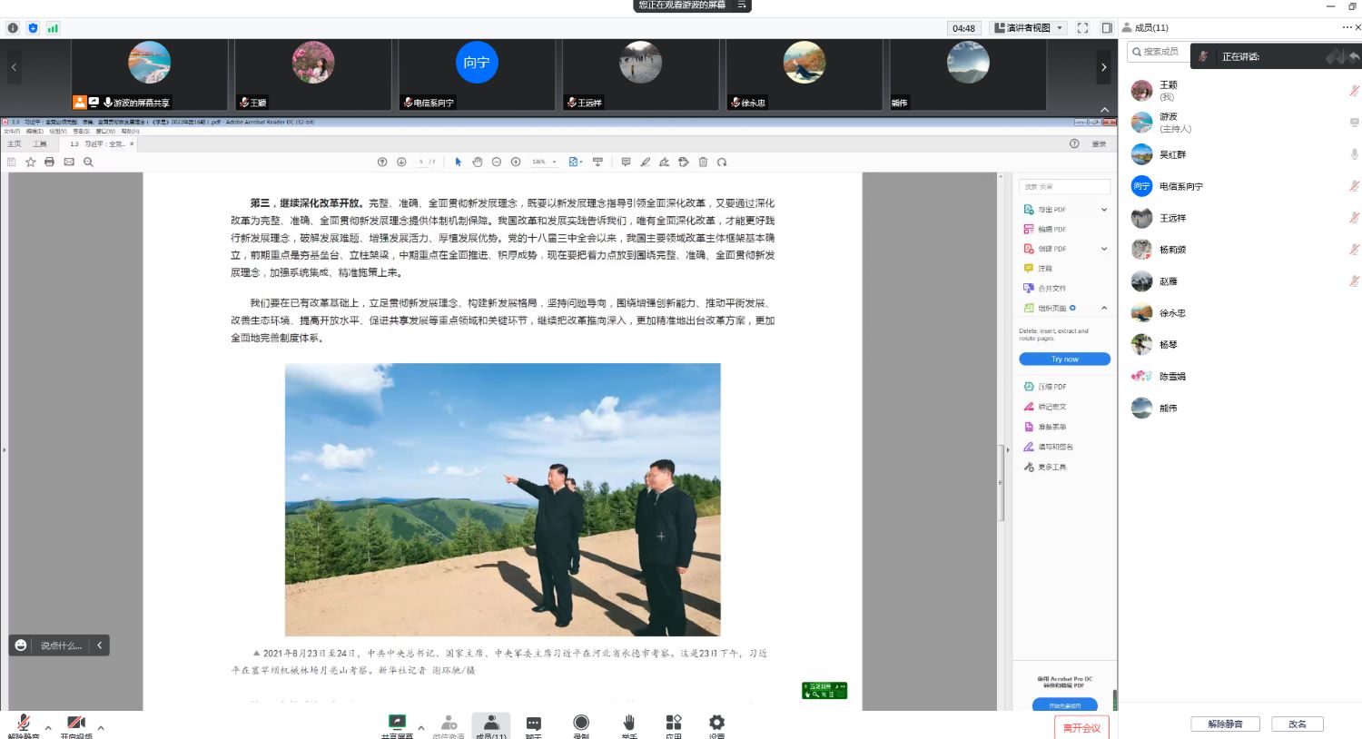 会上,支部游波同志带领大家一起学习了《中国共产党第十九届中央委员会第六次全体会议公报》、习近平总书记在四川考察时的重要讲话精神、《中国共产党四川省第十二次代表大会关于中共四川省第十一届委员会报告的决议》、乐山市第八次党代会报告、教育部等十部门关于印发《全面推进“大思政课”建设的工作方案》的通知等多项内容。