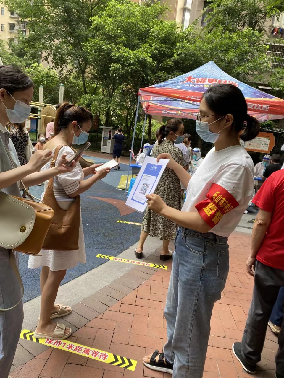 今年暑假,成都715疫情波及乐山,防控形势严峻,乐山开展全员核酸。防疫人手严重不足,面向社会征集志愿者。电子信息工程系叶利丽、杨琴两位党员看到征召后,不顾酷暑主动报名参与滟澜洲社区核酸检测工作,顶着烈日维持检测秩序,耐心帮助不会使用健康码的老人完成检测,充分发扬党员先锋模范作用。