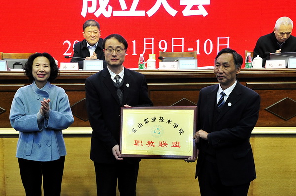 仪式上,郭捷为乐山职业技术学院职教联盟授牌。