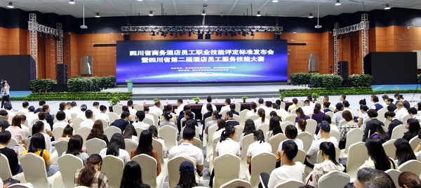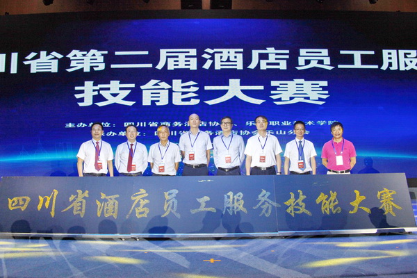 9月8日,在第五届中国(四川)国际旅游投资大会和第六届四川国际旅游交易博览会在乐山召开之际,由四川省商务酒店协会、乐山职业技术学院举办的《四川省商务酒店员工职业技能评定标准》发布会暨第二届四川省酒店服务技能大赛开幕式在四川省国际旅游交易博览中心顺利开幕。乐山市政府副秘书长耿强,四川省民政厅社会组织管理局副局长廖亮、四川省民营经济工作领导小组综合处主任沈彦、四川省商务酒店协会会长张宏图,乐山市商务局副局长唐国臣,学院党委书记蹇路、院长刘忠以及乐山市教育局、乐山市文化广播电视和旅游局,四川酒店职教联盟会员单位代表出席。发布会和开幕式由学院院长刘忠主持。