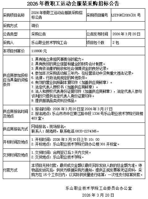 2026年教职工运动会服装采购招标公告