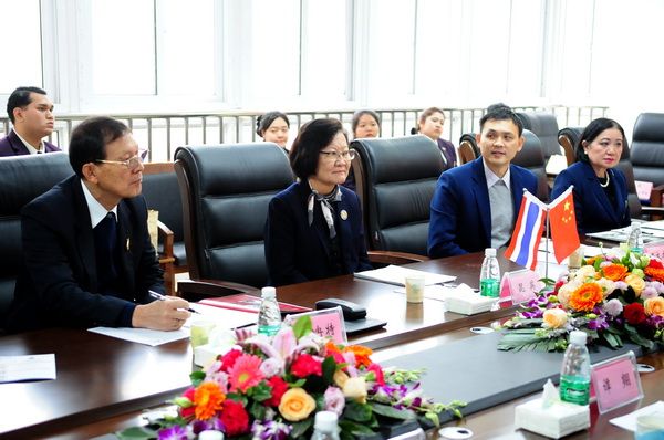 2017年12月6日上午,泰国皇家吉拉达学校昆英校长、职教部主任萝拉珑、职业教育委员会顾问苏冉特、国际部助理部长王文龙一行来我院访问,双方在学院行政楼424会议室举行了交流座谈,学院党委副书记陈芝海,乐山市对外友好交流协会会长谭翙、友城科长杨承毅,学院国际合作处、教务处、旅游系、基础公共课程部负责人,国际合作处相关工作人员及来自泰国皇家吉拉达学校的5名交换生参加了此次交流座谈。会议由党(院)办主任、国际合作处处长黄晓莉主持。 座谈会上,陈芝海代表学院对昆英校长一行到访表示热烈欢迎。他回顾了我院与泰国多所高校及泰国皇家吉拉达学校的合作历史及合作7年来取得的丰硕成果,并介绍了我院搬入新校园后的总体情况。昆英校长就我院多年来对皇家吉拉达学校交换生的关照表示了感谢,介绍了泰国皇家吉拉达学校的教育理念、学制和专业特色等办学情况,并表达了希望与我院结为友好姊妹学校,让双方合作再上新台阶的愿望。乐山市对外友好交流协会会长谭翙对泰国客人来访表示欢迎,并祝愿双方的合作取得圆满成功。