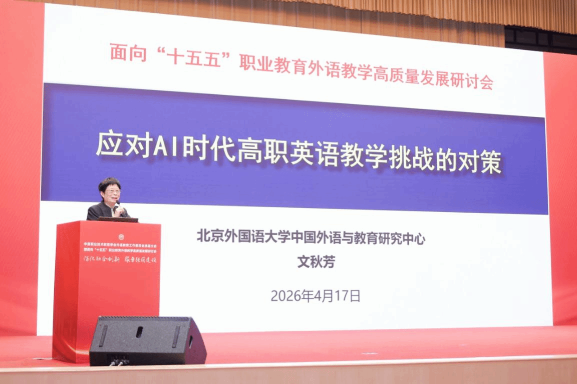 大会审议通过了外语教育工作委员会未来三年工作计划,系统谋划 “十五五” 时期职业教育外语教学高质量发展路径。教育部职业教育发展中心教学教材处处长刘义国、北京外国语大学中国外语与教育研究中心教授文秋芳、外语教学与研究出版社资深编辑,先后围绕《教育强国视野下职业教育教学改革关键要素改革》《应对 AI 时代高职英语教学挑战的对策》《坚守使命,开拓创新 —— 构建职业外语教学新生态》作专题报告,精准研判行业发展趋势,深度破解职教出海、教学实践中的痛点难点问题。