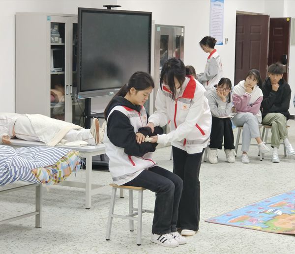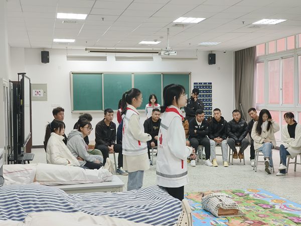 乐山职业技术学院护理学院于2023年11月12日在一号实训楼104和105开展“急救培训活动”,乐山职业技术学院红十字会学生分会部分社员以及普专对口护理23-7班、普专对口护理23-8班、普专对口护理23-9班部分同学参加。