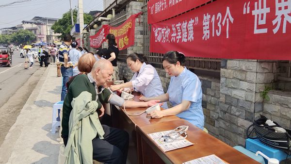 乐山职业技术学院2023年职业教育活动周正如火如荼进行中,各二级学院积极参与,展现着职业教育改革创新的生动发展成果。2023年5月16日,在乐山市市中区卫生健康局的组织下,护理学院与乐山市各大医院共同在苏稽镇开展了“科普促健康、携手向未来”义诊活动,此次活动护理学院选调了内科、全科、护理、助产、公卫、中医等专业骨干专家7名和白衣卫士志愿服务队6名志愿者,共同组成义诊团队参与本次活动。
