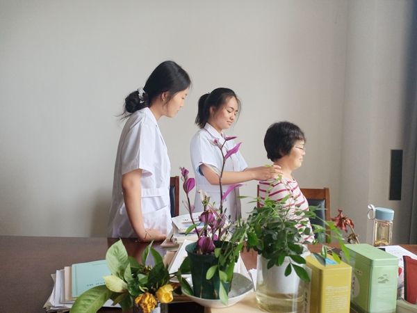 活动开始,在青协干事的带领下,志愿者们为老师们进行推拿按摩,以减缓老师们在教学工作中的疲劳。在服务过程中,老师们关心着同学们的学习情况,同学们也向老师们推荐了一些简单的缓解疲劳的方法,以便老师们在繁忙的教学工作中能够舒缓疲劳。