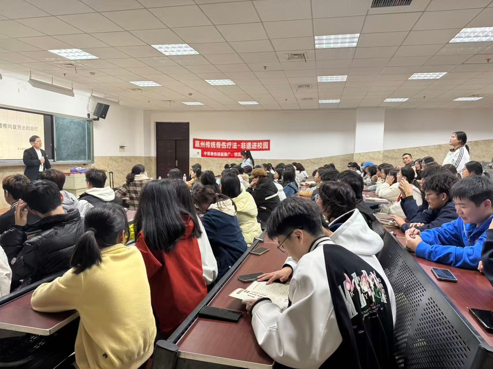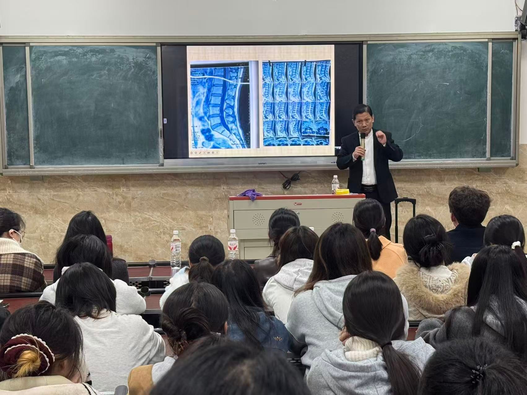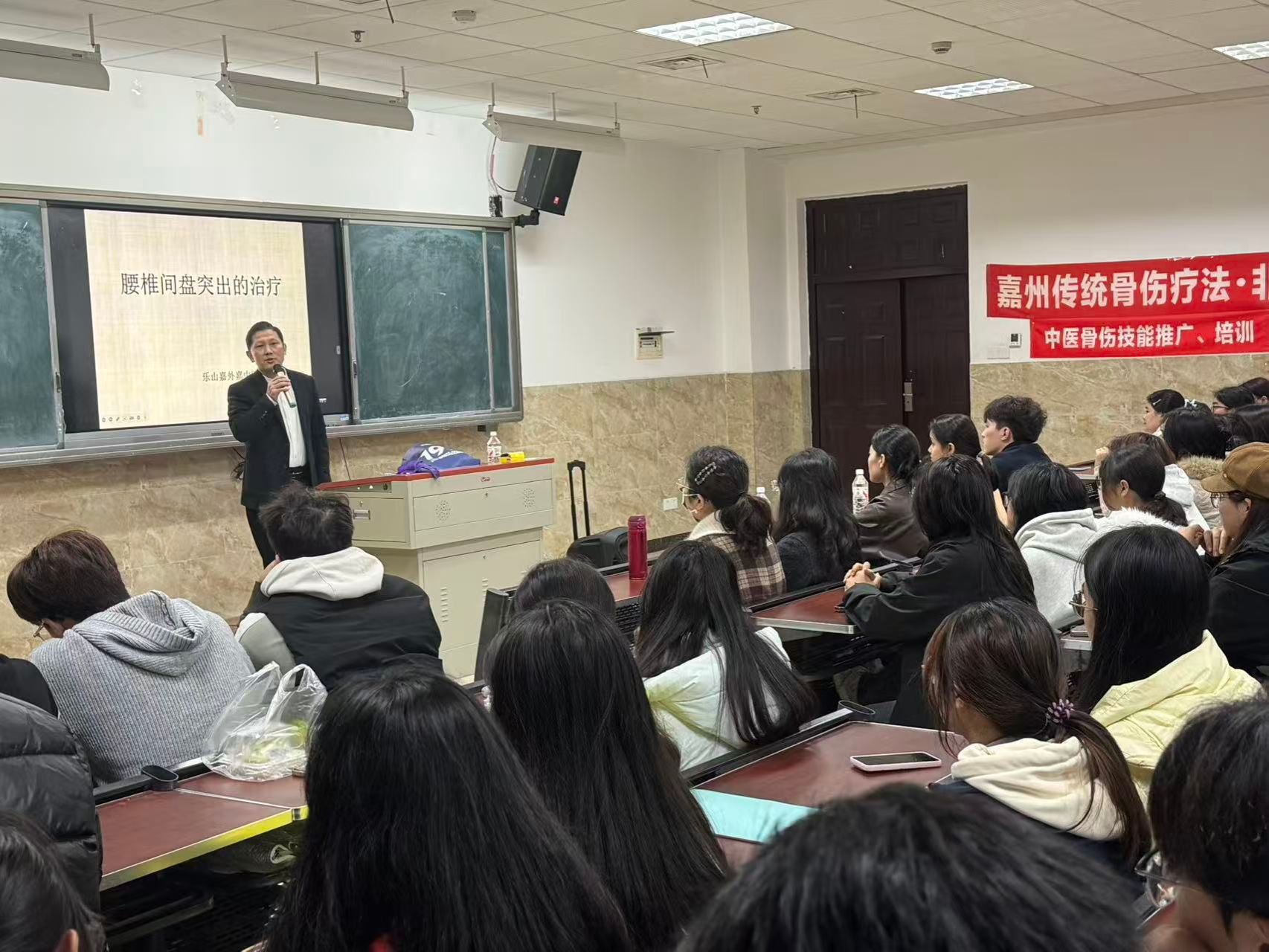 11月16日晚,在乐山职业技术学院学术阶梯教室百余名中医专业大一、大二学生齐聚一堂,聆听嘉州传统骨伤疗法市级非遗代表性传承人叶智勇带来的专题讲座《腰椎间盘突出症的中医诊疗与嘉州骨伤手法实践》。此次活动由乐职院中医教研室发起,张琪,曾晓霞老师共同参与,是学院深化“非遗进校园”校企合作的又一次生动实践。