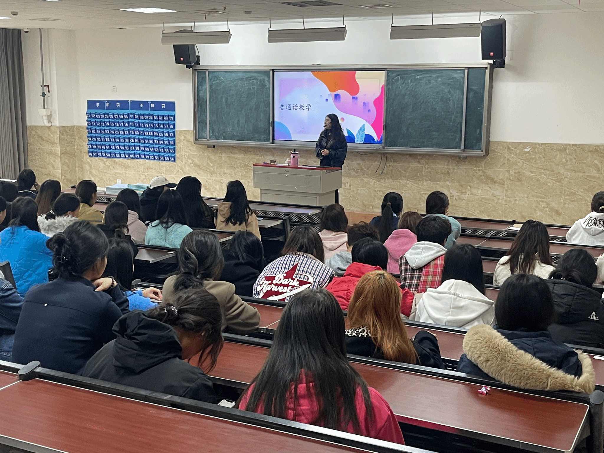 为帮助彝族同学提高就业竞争力和社会交往能力,促进彝汉文化交融,民族团结,2025年10月31日,护理康养学院杨庆老师为彝族爱心社举办普通话培训活动。