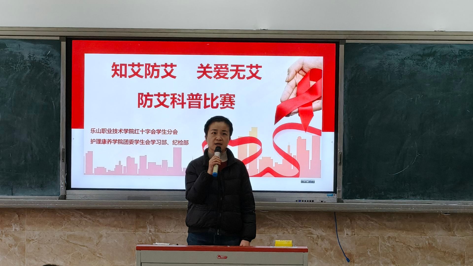 2025年11月14日,眉山片区中央财政支持防艾项目活动——“知艾防艾・关爱无艾”校园防艾科普大赛决赛在乐山职业技术学院教学楼2C201热烈举行。经过初赛激烈角逐,15组选手脱颖而出,以创意与专业点燃了一场别开生面的青春健康科普盛会。乐山职业技术学院红十字会学生分会指导老师方俪鹃、师资范学科和项目负责老师毛羽佳担任了此次决赛评委。
