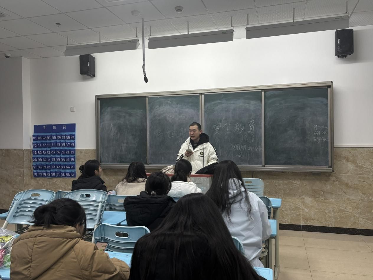 寒假将至,安全先行。为切实强化全体学生寒假期间安全防范意识,牢牢守住安全底线,全面提升学生自我保护能力,为学生平安快乐度过假期筑牢坚实屏障,2026年1月11日,护理康养学院组织全体学生开展“寒假安全教育”主题班会。