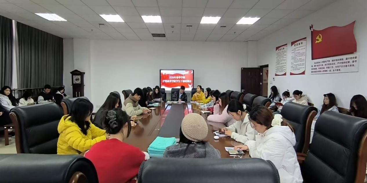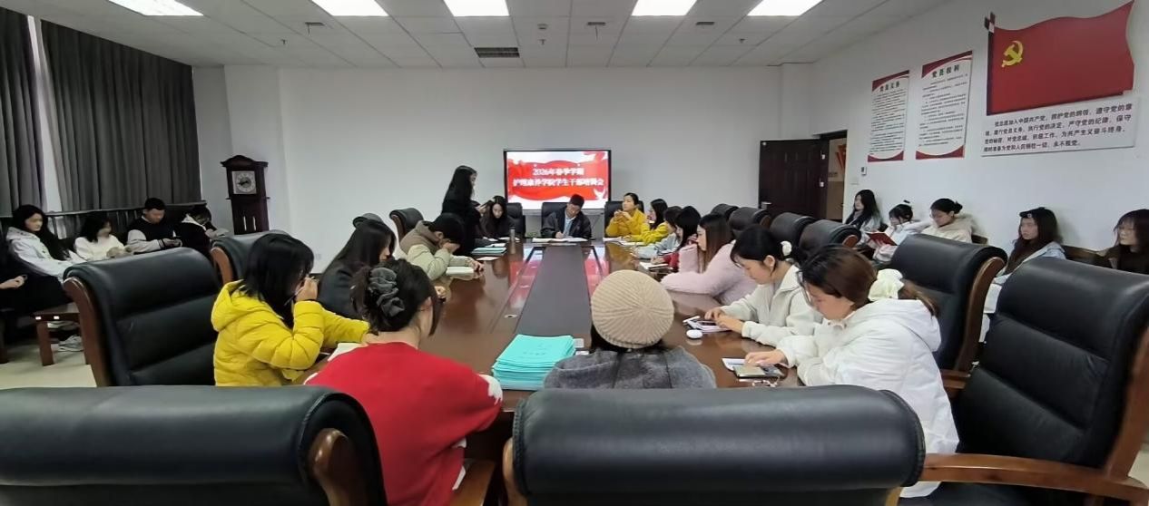 2026年3月8日,护理康养学院顺利开展2026年春季学期“学生干部培训”会议。本次会议以强化学生干部队伍建设、明确工作方向、提升履职能力为核心目标,进一步凝聚学生干部力量,推动学院学团工作高质量开展。护理康养学院党总支副书记邱科、院团委书记李姝环、学工办毛羽佳出席会议,2024级团委学生会全体干部参加此次培训。