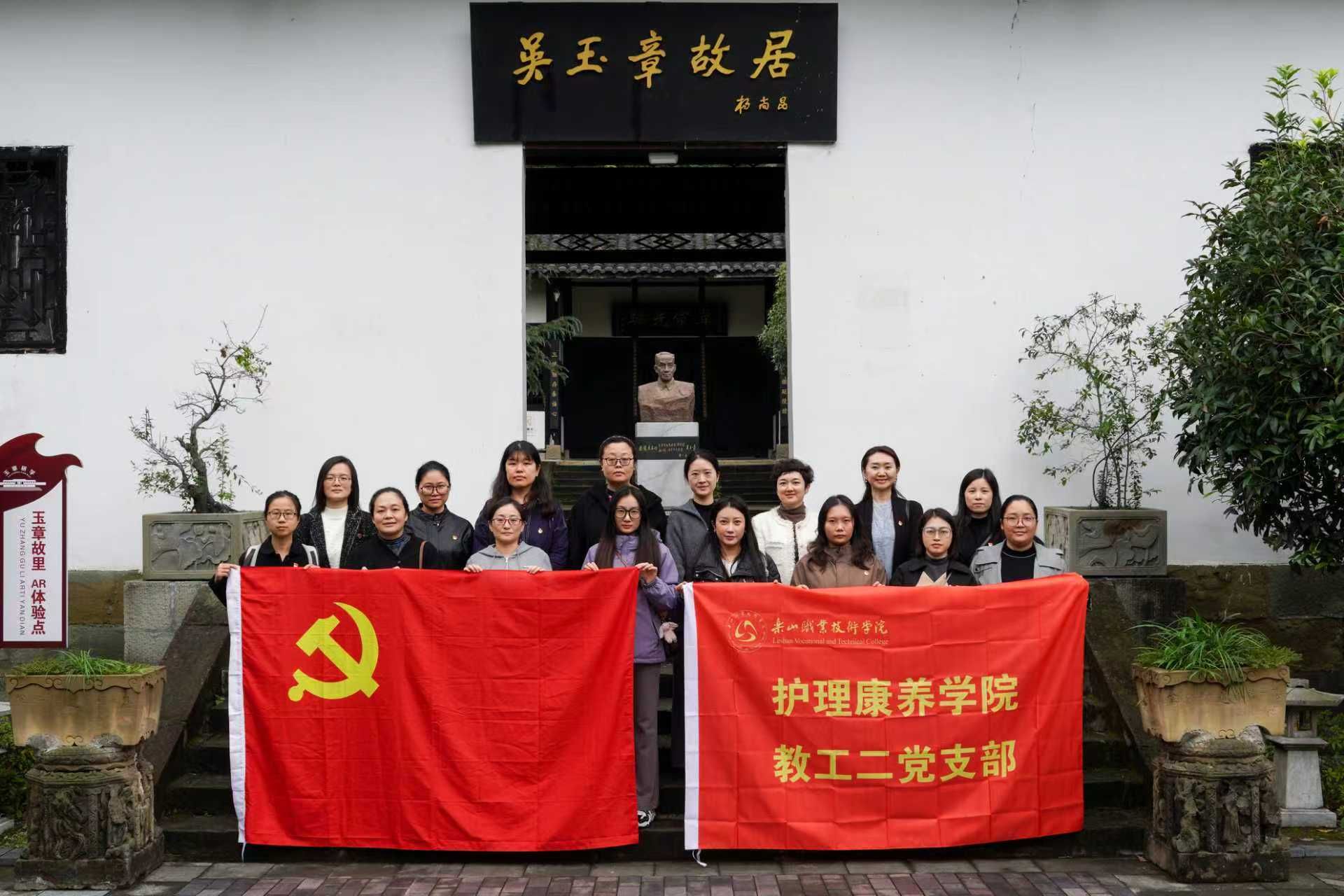 为深入学习贯彻习近平新时代中国特色社会主义思想,推进省级样板支部建设,乐山职业技术学院护理康养学院教工第二党支部于2025年10月24日组织全体党员赴自贡吴玉章故居纪念馆开展红色主题学习活动。