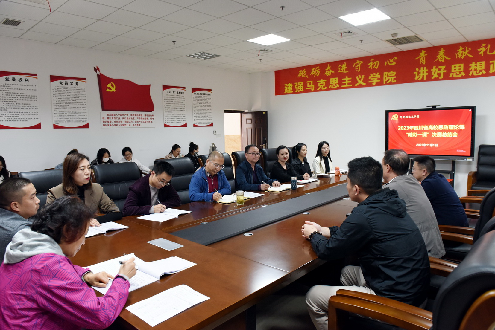2023年11月1日下午,乐山职业技术学院马克思主义学院在教研楼410会议室召开2023年四川省高校中青年教师“精彩一课”讲课比赛总结会,校长刘忠出席会议,党委宣传部(统战部)负责人,党政办和宣传部相关人员,马院全体教职工参会。马院主持工作副院长徐志红主持会议。