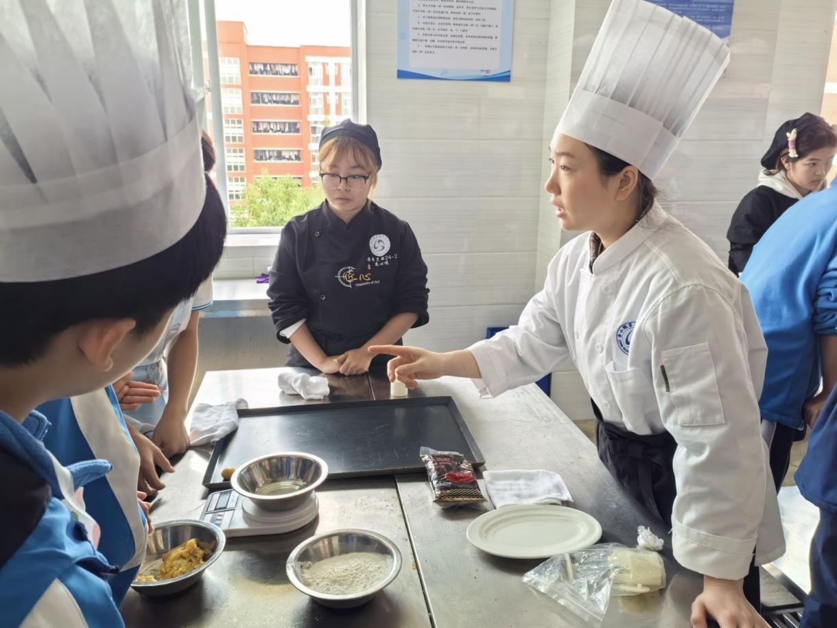 11月4日,乐山市沙湾区踏水镇初级中学104名学生走进乐山职业技术学院烹饪实训中心,开展了一场集实践体验与文化浸润于一体的美食文化研学活动。美食体验研学活动是由学校与乐山新华文轩合作举办,也是乐山美食学院建设的一项特色活动,以了解乐山美食、体验制作美食、品尝享受美食、宣传乐山美食为研学目的。本次活动由6位烹饪工艺与营养专业教师担任研学导师,20名志愿者全程提供服务,让同学们在动手实践中感受乐山美食魅力,传承地方美食文化。