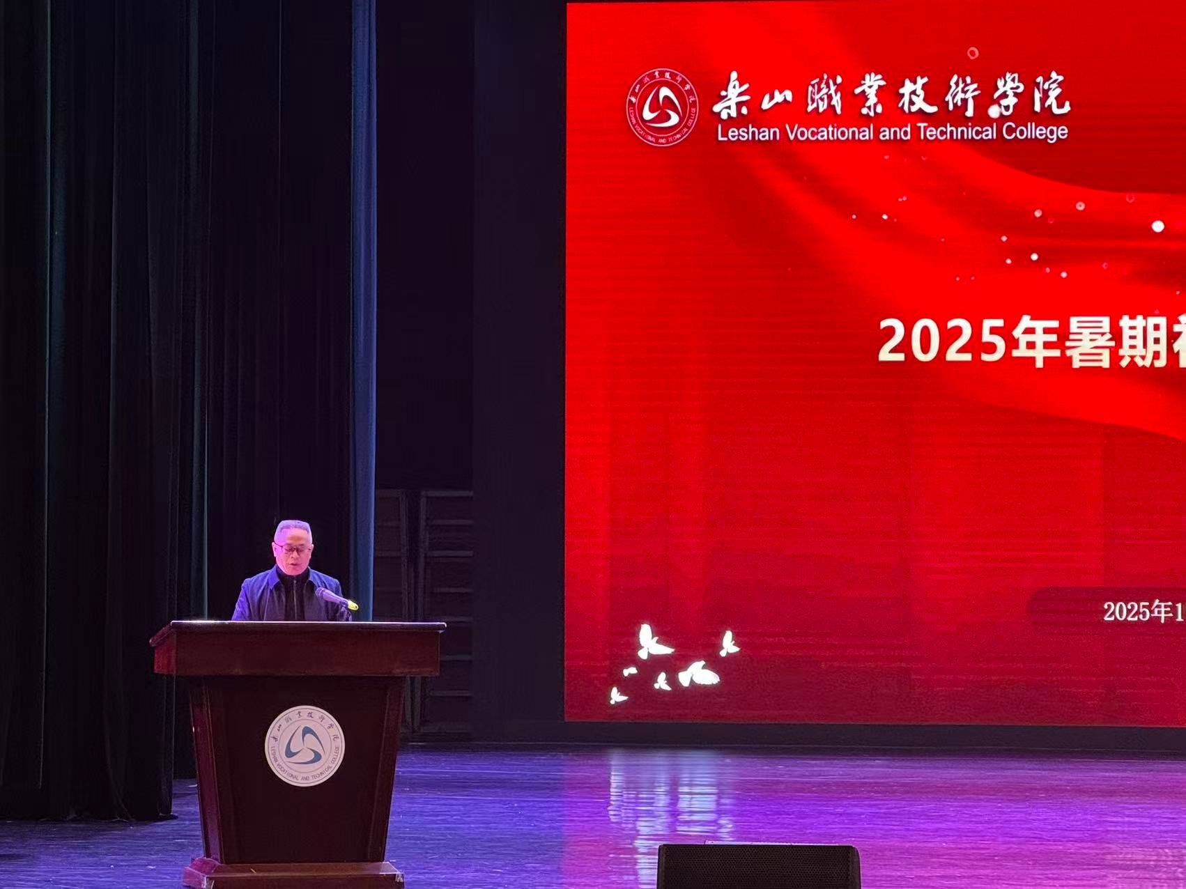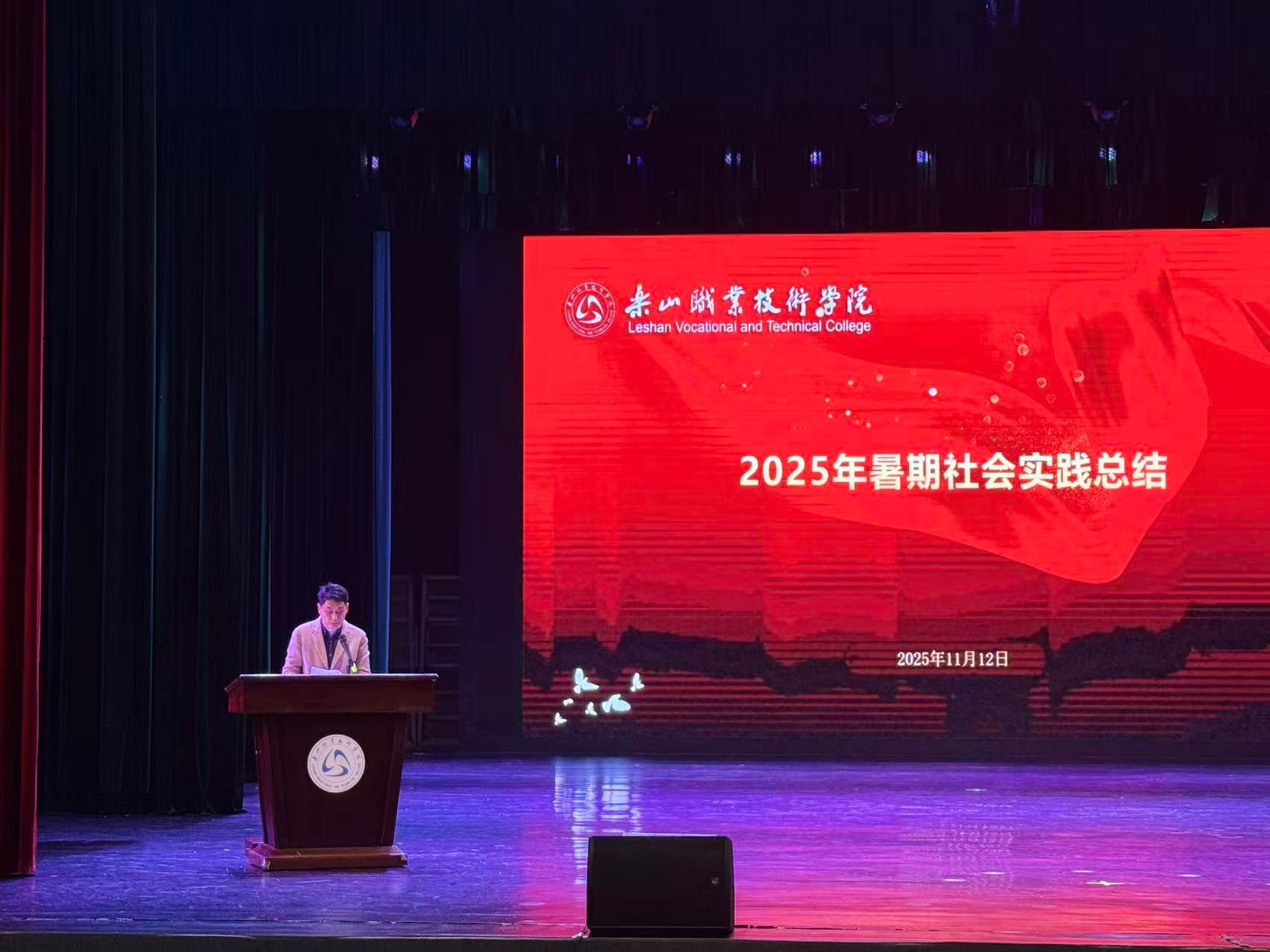 为系统总结暑期社会实践成果,深化实践育人成效,凝聚青年担当力量,近日,乐山职业技术学院2025年暑期“三下乡”社会实践总结大会在学校礼堂隆重举行。学校党委委员、副校长张学河,团委副书记罗贤,各二级学院党总支副书记、团委书记、指导教师代表及800余名学生代表参加大会,共同回顾盛夏里的实践征程,共话青春成长与责任担当。