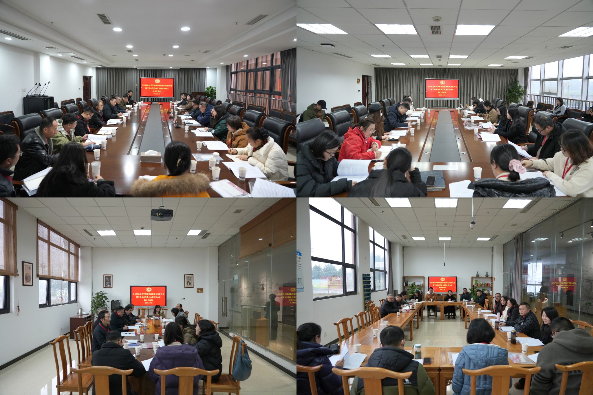 1月19日,乐山职业技术学院第四届教职工代表大会暨工会会员代表大会第七次会议在学术交流中心3004会议室召开。学校党委书记成定彬,校长刘忠,党委副书记、工会主席张佳,纪委书记李昌贵,党委委员、副校长张学河、周芹,以及教代会代表共计78人参加会议。部分中层干部列席会议。