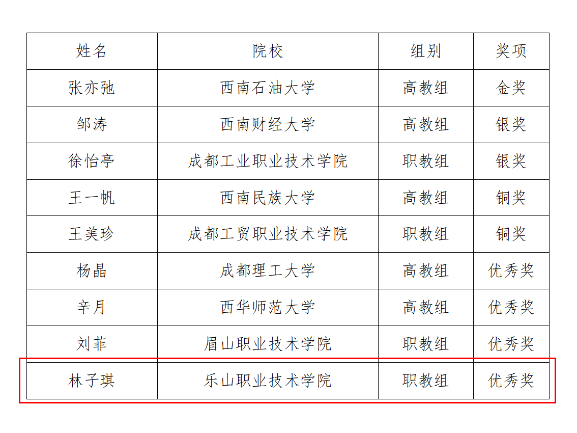 本届大赛由教育部、天津市人民政府主办,以“筑梦青春志在四方,规划启航职引未来”为主题,课程教学赛道聚焦职业发展与就业指导课程创新。此次获奖是对学校生涯教育与就业指导工作的充分肯定。乐山职业技术学院始终重视职业规划课程建设,将职业规划课程建设作为提升人才培养质量的关键环节。未来,学校将继续以大赛为引领,以赛促教,深化职教改革,为培养高素质技术技能人才、助力区域发展注入更强动力!