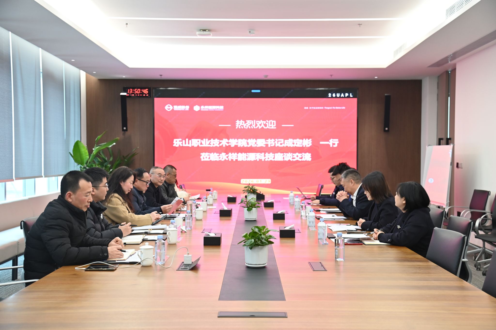 永祥能源科技、福华通达化学两家企业负责人对成定彬一行的到来表示热烈欢迎,详细介绍了企业发展规划、核心业务布局、人才需求导向及技术合作愿景。成定彬全面介绍了乐山职业技术学院的办学特色、学科优势及过往校企合作成效,双方围绕人才定向培养、实习实训基地共建、产学研项目对接等核心议题展开深入交流,初步梳理出多项潜在合作方向,为后续精准对接奠定基础。