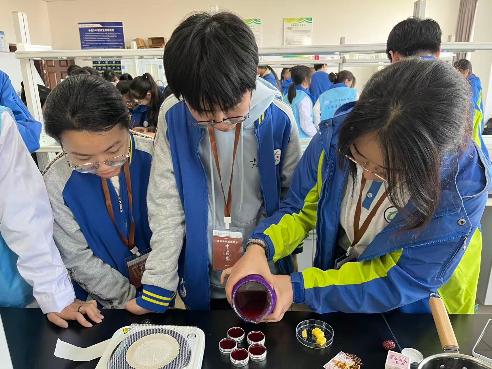 传统医药,传承国粹精华:在中医药体验区,同学们通过“五感识药材”辨药性,亲手制作中药紫草膏,在一嗅一触、一熬一制中,感受了中医药文化的悠久历史与实用价值。