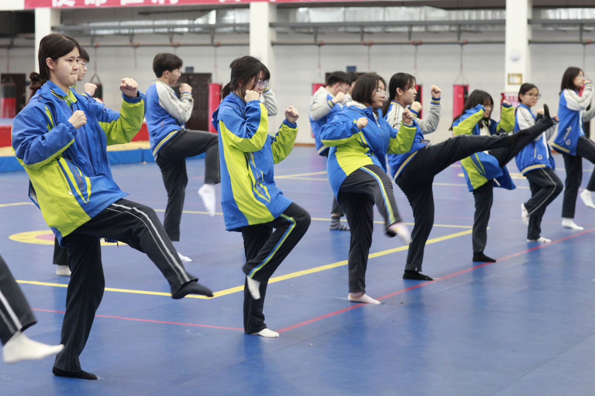 艺体融合,强健体魄精神:峨眉武术体验场上,同学们一招一式有板有眼,在挥洒汗水的同时,不仅强健了体魄,更传承了巴蜀大地坚韧不拔、自强不息的精神气概。