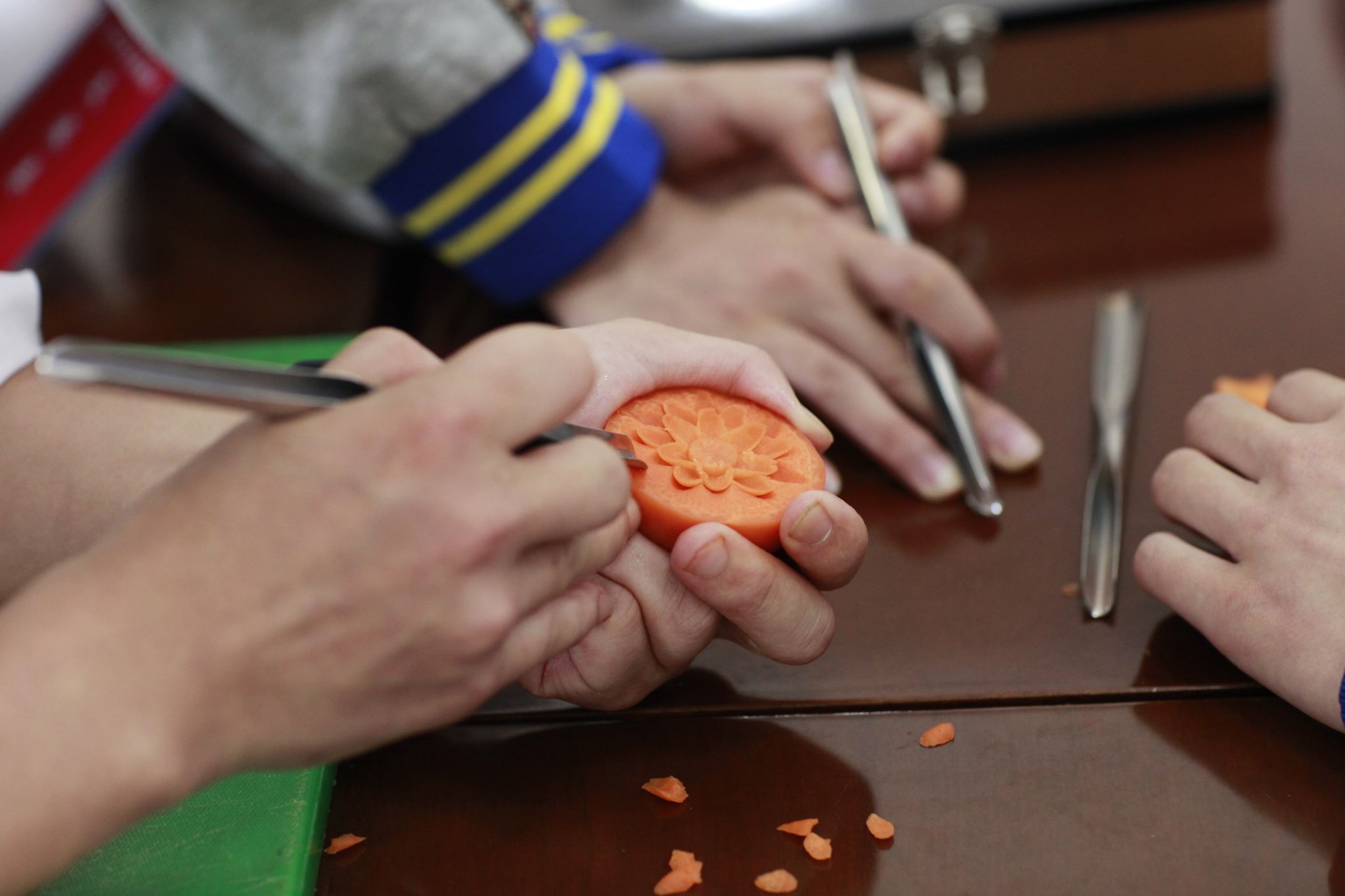 文旅体验,匠心与雅趣并存:在食品雕刻课堂上,普通的食材在老师指导下变成栩栩如生的艺术品;茶文化与茶艺体验区,同学们在茶香袅袅中学习传统礼仪,感悟中华茶道的博大精深。