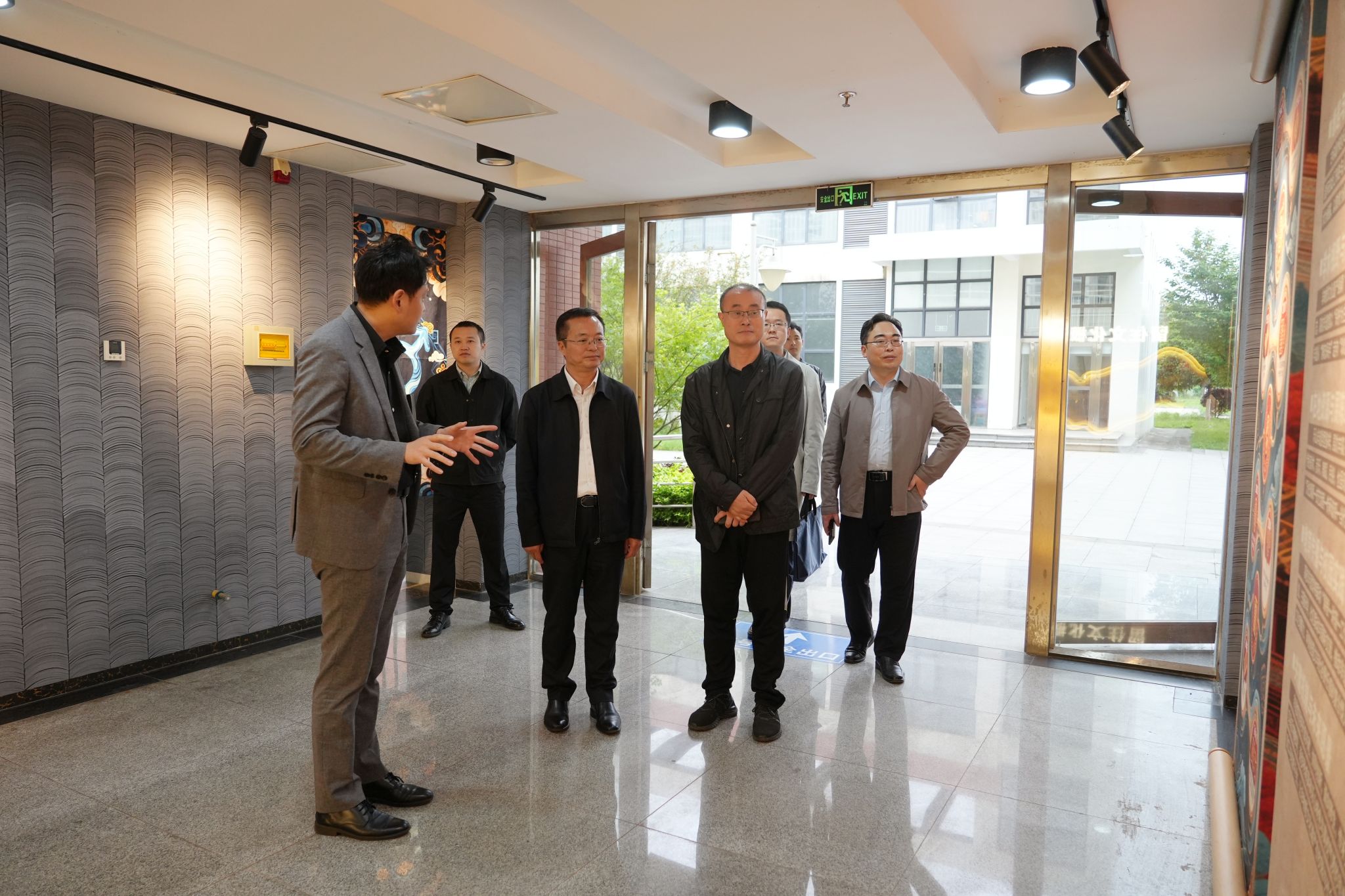 随后,胡兵在校长刘忠陪同下前往青江艺术空间参观,了解空间打造理念、艺术文化活动开展及校园美育育人实践成果;随后步行至行政楼非遗馆,深入了解学校依托非遗资源开展文化传承、特色思政教育、非遗技艺普及的工作举措与成效。在射击馆,胡兵一行边走边看、认真聆听,细致了解学校在专业建设、实践育人、校园文化打造、特色办学等方面的创新做法与办学成效,对我校多元化育人模式、完善的实训教学条件、深厚的校园文化底蕴给予高度认可。