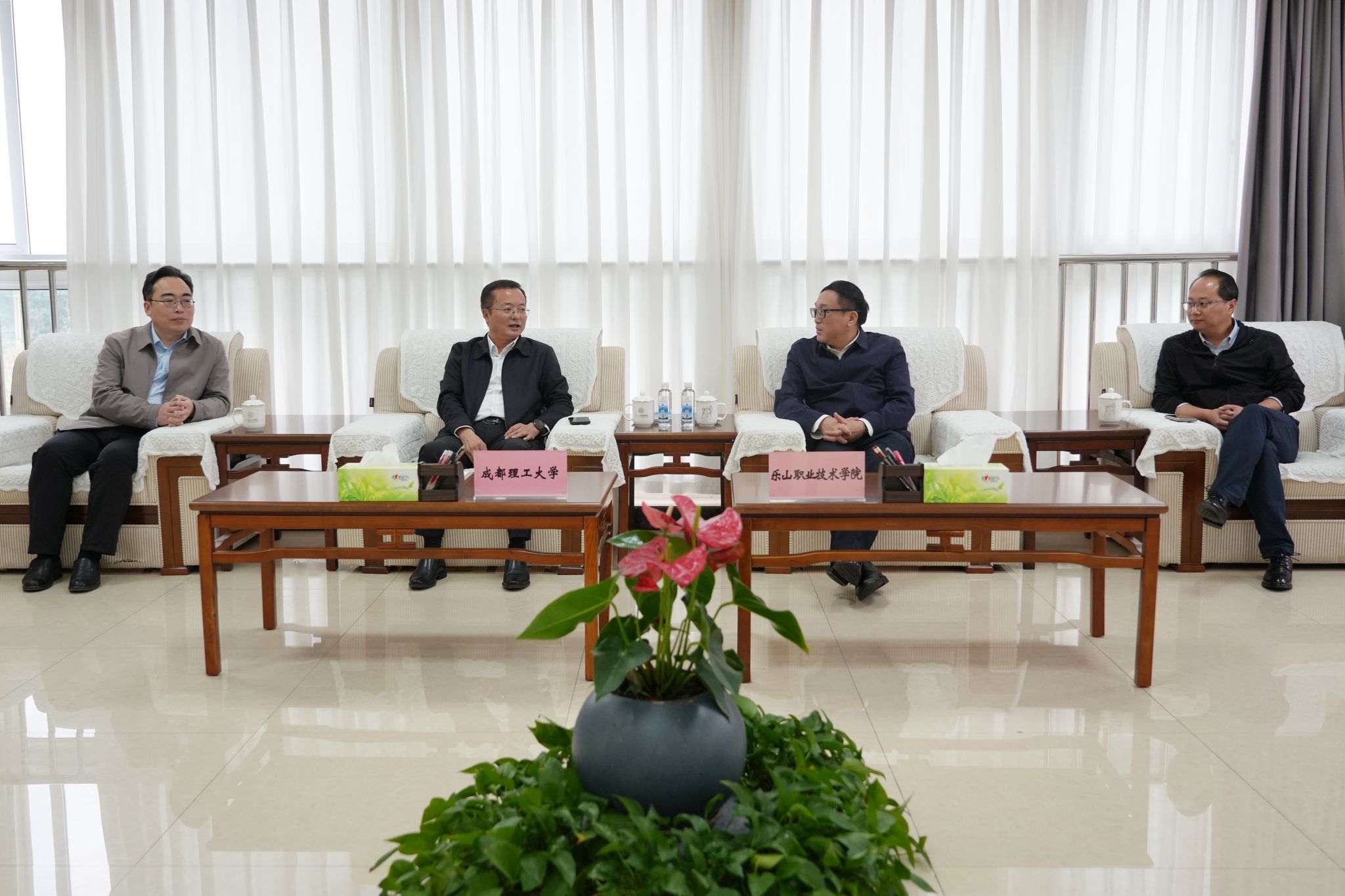 成定彬对胡兵一行到访表示热烈欢迎,并就学校产教融合,校企合作,产业转化,对外交流合作等作了详细介绍。