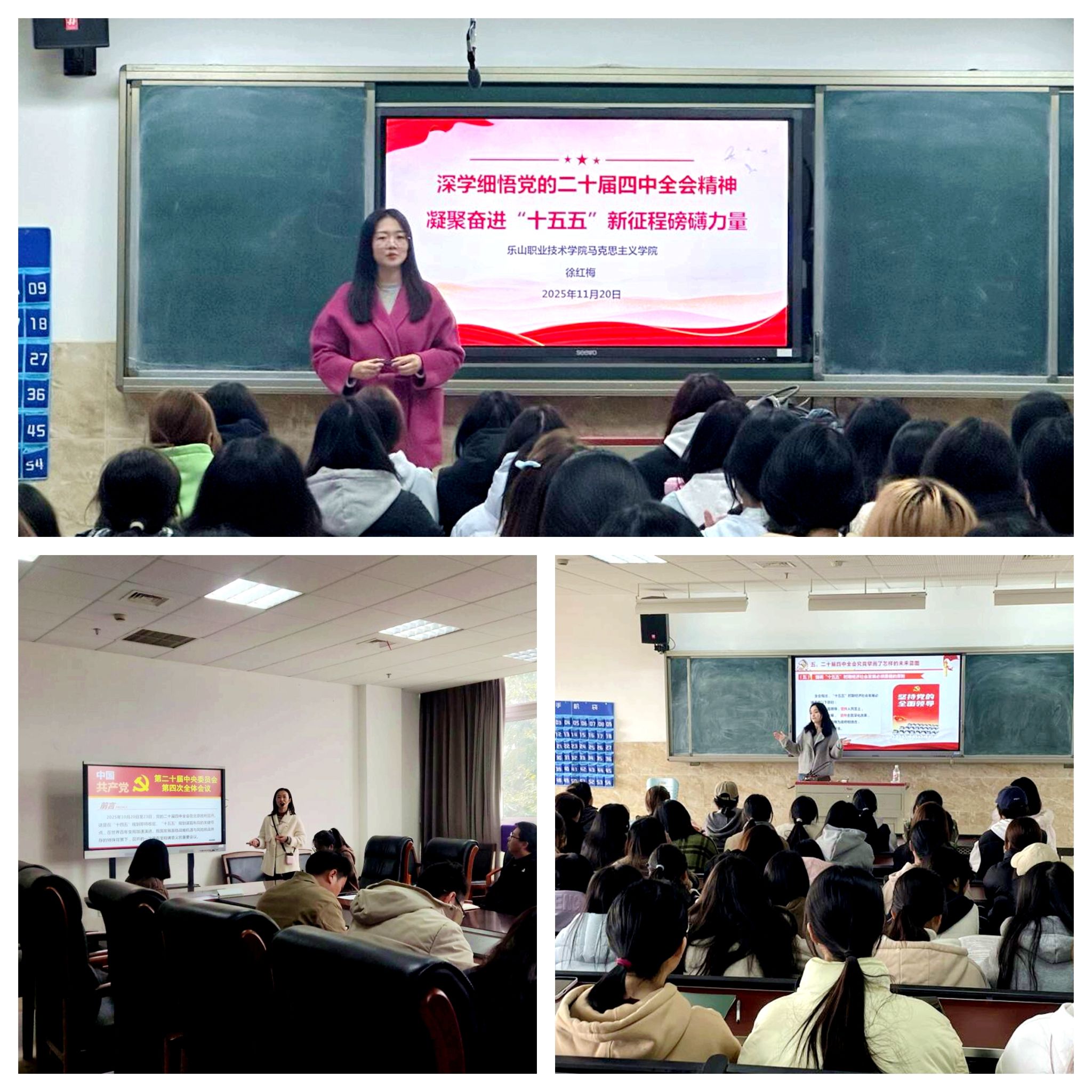 近日,马克思主义学院姚佳秀、陈红旭、于登辉、代丽佳、闫晓婷、秦溢苑、徐红梅、王海燕、司田园、邓加强、吕远征、胡芝等12位教师,为我校各二级学院师生开展党的二十届四中全会精神理论宣讲,二级学院教职工、行政机关及学生代表共计500余人参加。