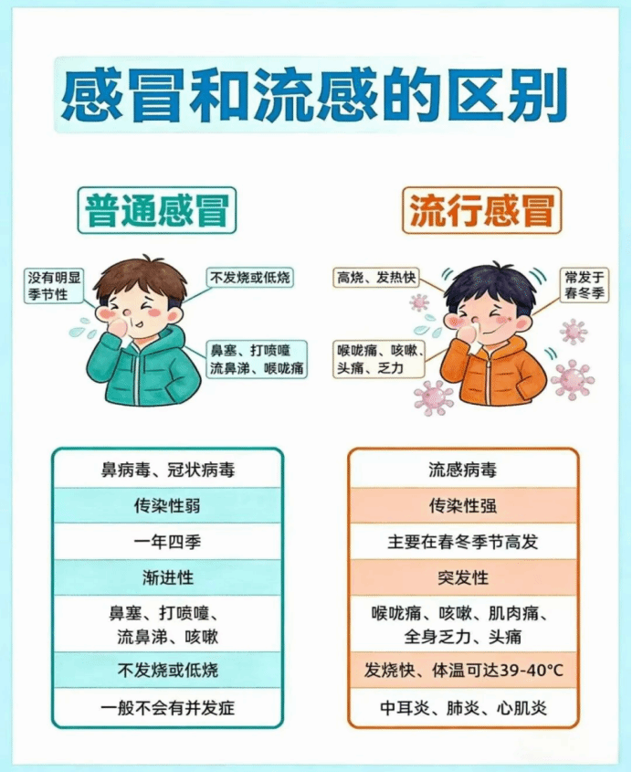 典型症状:发热、头痛、乏力、肌肉酸痛,还常伴有咳嗽、咽痛、流涕等呼吸道症状,症状比普通感冒更明显,严重时可能引发肺炎等并发症,影响学习和生活状态。