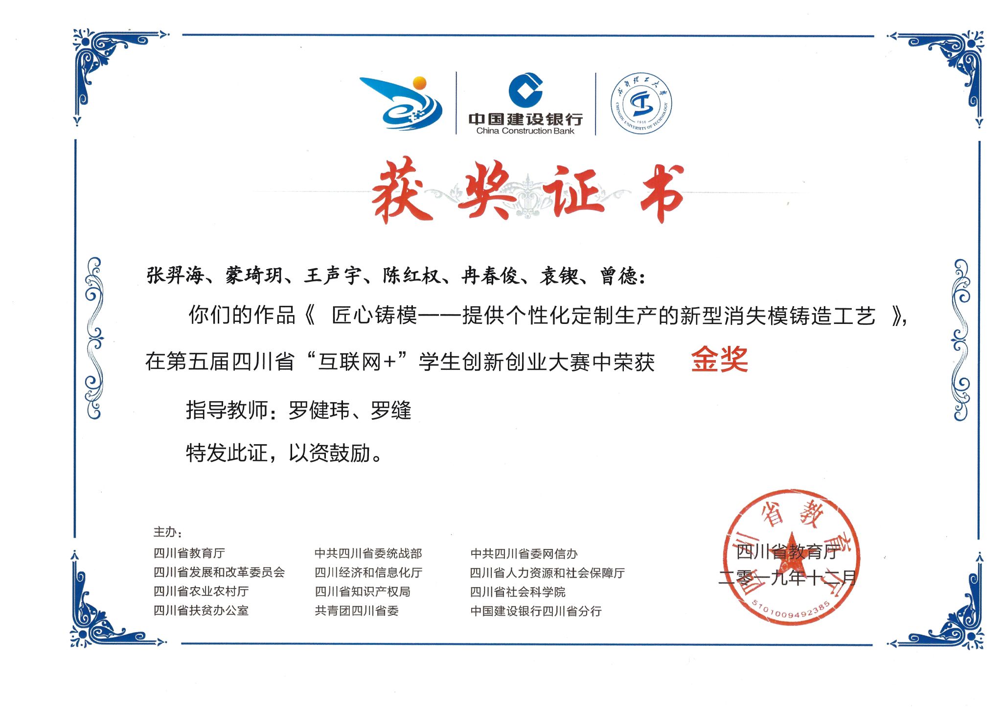 学院学生获第五届四川省“互联网+”学生创新创业大赛金奖