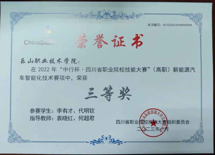学院学生获“中行杯·四川省技能大赛”新能源汽车智能化技术赛三等奖