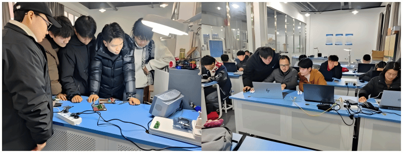 回顾备赛历程,团队的成长之路清晰而坚定。2024年9月,学校组建了一支涵盖测控技术、控制科学、电子信息等多个专业领域的年轻指导教师团队,6名硕士研究生教师各展所长,为竞赛提供全方位技术支撑。在学院大力支持下,四号工厂2楼智能汽车工作室正式启用,配备3D打印机、示波器、专用赛道、车模等全套设施设备,并经过4次以上空间与设备优化调整,成为师生备赛的“硬核大本营”。
