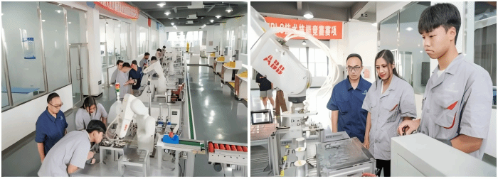 拥有先进制造中心、智能制造协同创新中心、机器人与智能控制创新实践中心、智能汽车工作室、西门子MCD机电概念一体化设计实训室和乐山市特种机器人工程技术研究中心等“产学研用创”“五位一体”的创新实践平台。机器人与智能控制创新实践中心主要设备包括智能微型产线与数据管理平台、机器人系统集成、智能控制装调、智能控制系统创新与设计、智能机器人应用、CSPACE实时仿真控制系统等设备46套,设备仪器值近1000万元。其中,微型产线与机器人系统集成以智慧仓储、视觉检测、无序抓取上下料、装配等流程为主线搭建出一条可追溯产品检验、分拣、装配、转运、入库流程的自动生产线,构建了一个全面感知、无缝联接、高度智能的数字化自动化产线,配套VR与数字孪生和线上智能制造实训系统,个性化定制智能协同制造数字化实训系统用于支持工业机器人技术专业群建设和技术技能人才的培养。