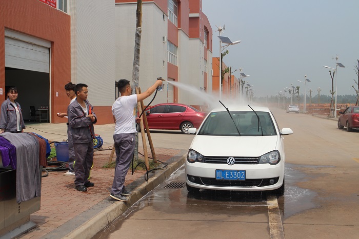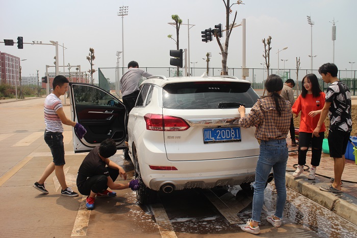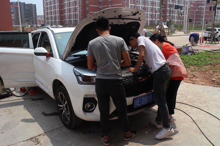 汽车爱好者协会的同学们分小组在五号实训工厂进行洗车活动。协会社员以4s店的标准接待老师,对老师车辆信息进行记录,对车面进行检查,保管好老师的车辆钥匙,随后专门人员将车辆开到规定位置进行洗车,清洁后对汽车进行维护保养检查并对车辆可能出现的问题或隐患做好详细记录,最后将车辆的保养情况和建议告知老师。在活动进行的同时汽车专业老师徐斌老师还为本院其他教职老师讲解汽车基本的维护保养知识。