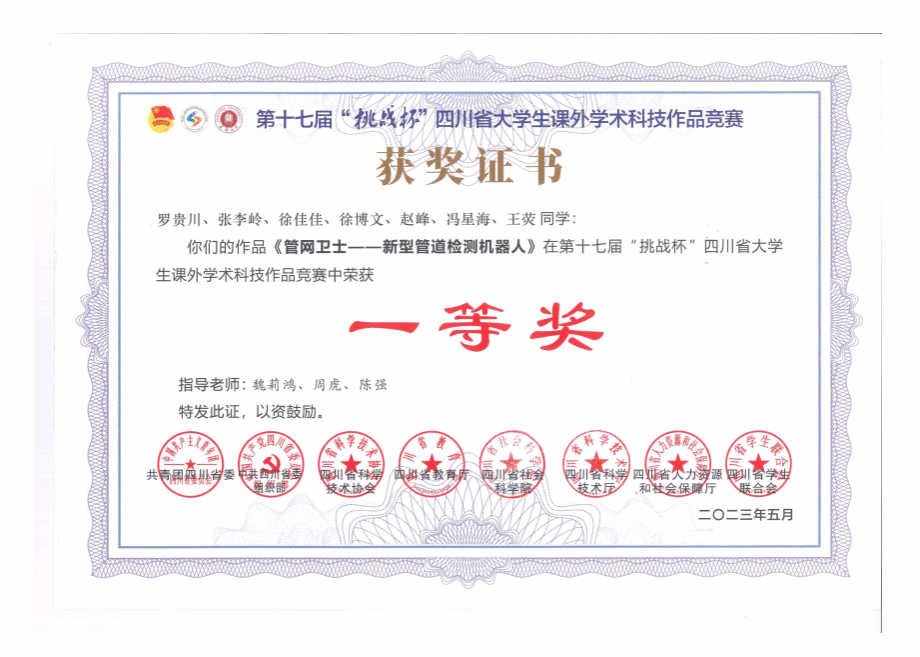 学院学生获第十七届“挑战杯”四川省大学生课外学术科技作品一等奖
