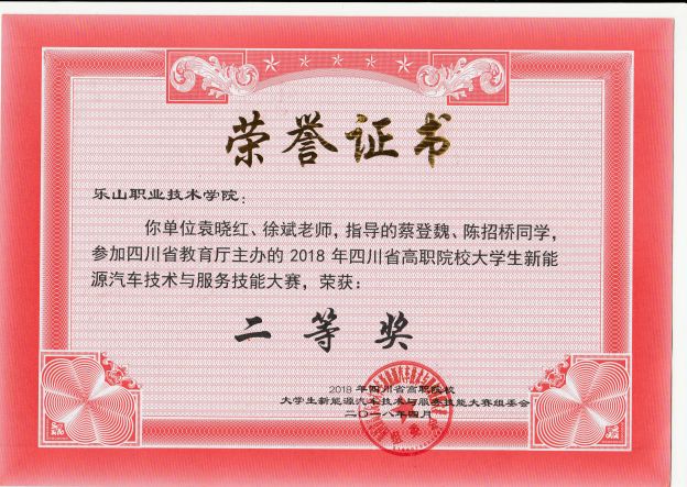 学院学生获四川省高职院校大学生新能源汽车技术与服务技能大赛二等奖
