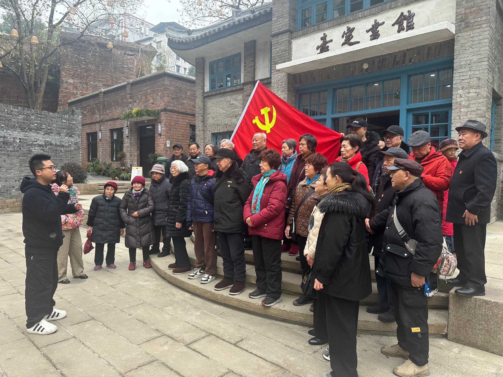 2026年1月15日上午10时,乐山市中区海棠街道县街社区党委联合我校马克思主义学院,在乐山市嘉定书馆开展主题党日活动。马克思主义学院教师刘晓锐,以“嘉定书香传文脉,乐山精神映初心”为题作宣讲。