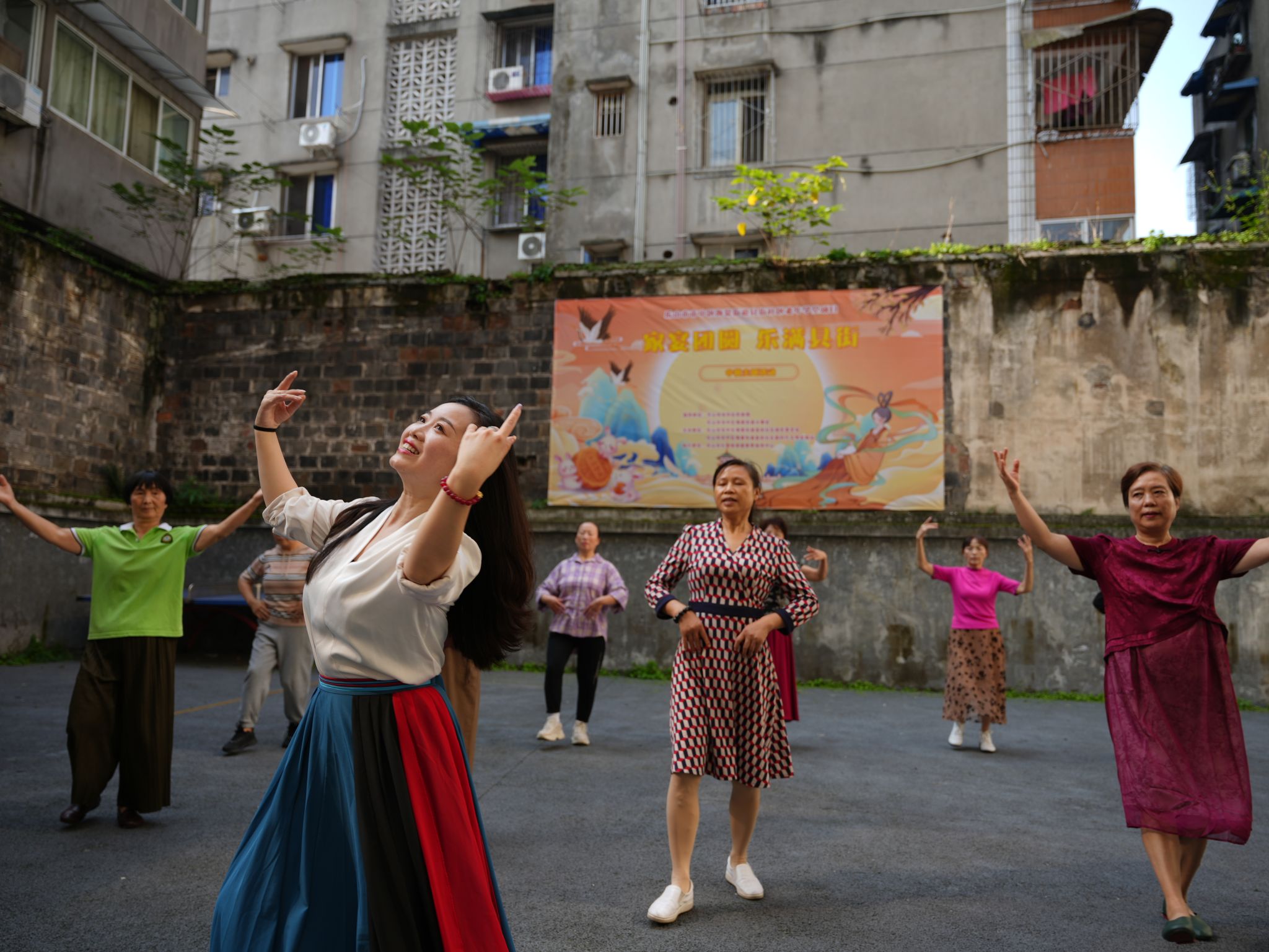 在教学环节,她耐心分解动作,细致示范指导。从基本手位、脚位到连贯舞步,她一遍遍带领老人们练习,并不时给予鼓励。学员们学习热情高涨,跟着音乐的节拍,认真模仿,逐步掌握了舞蹈的基本要领。活动现场气氛热烈,欢声笑语不断,充满了活力和温馨。许多老人表示,这样的活动不仅锻炼了身体,愉悦了心情,更让他们感受到了来自高校的关怀和社会的温暖,仿佛回到了青春年华。