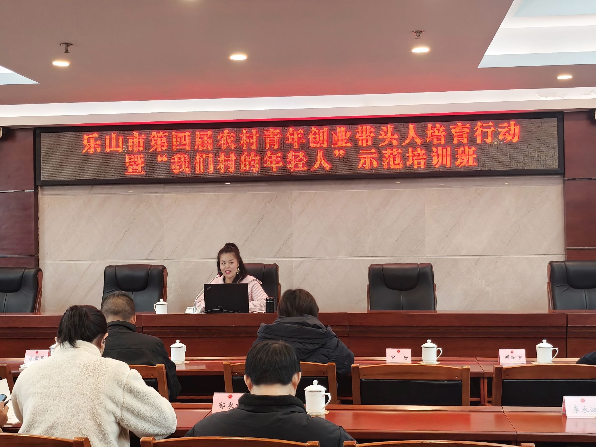 12月26日,乐山市第四届农村青年创业带头人培育行动暨 “我们村的年轻人” 示范培训班于老干部活动中心开班。此次培训,乐山市团委邀请乐山职业技术学院教师武会玲,带来“电商直播入门与实战路径--‘一部手机打天下’:乡村电商引流与变现入门”专题分享。此次培训班致力于提升农村青年在电商领域的创业能力,共40位农村企业家、青年干部及创业带头人参加。