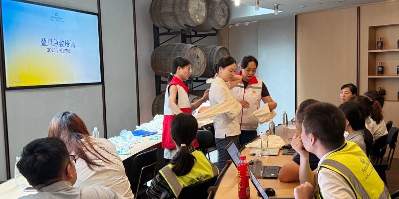 实操演练现场氛围热烈,酒厂员工分组围站在仿真模型旁,在三位教师的指导下逐一上手练习。教师们穿梭于各小组之间,紧盯每一个动作细节,针对按压位置偏移、力度不足、通气方式不当等问题及时纠正,耐心示范调整,确保每位学员都能掌握标准操作流程。最后的技能考核环节,学员们依次完成实操展示,全部顺利通过考核,真正做到“学懂、会用、能用好”。