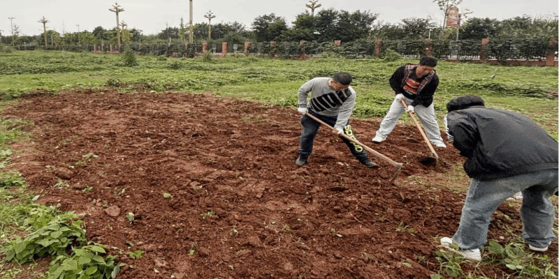 劳动现场,同学们分组协作,有序投入劳动。有人手持锄头奋力翻耕,将坚硬板结的红土梳理得松软平整;有人耐心蹲踞田间,仔细清除杂草,让土地重现生机。从杂草丛生到土壤焕新,每一处变化都凝聚着同学们的汗水与付出。劳动过程中,大家互相配合,共同探讨翻耕技巧,彼此鼓励清除顽固杂草,展现出医学学子团结协作、吃苦耐劳的精神风貌。“一锄一锄地翻,才能真正理解‘深耕’的意义。”有同学在劳动后感慨道。通过亲身体验,同学们不仅锻炼了动手能力,更深刻体会到“一分耕耘一分收获”的劳动价值,对脚踏实地、不畏艰辛的劳动精神有了更真切的认知。