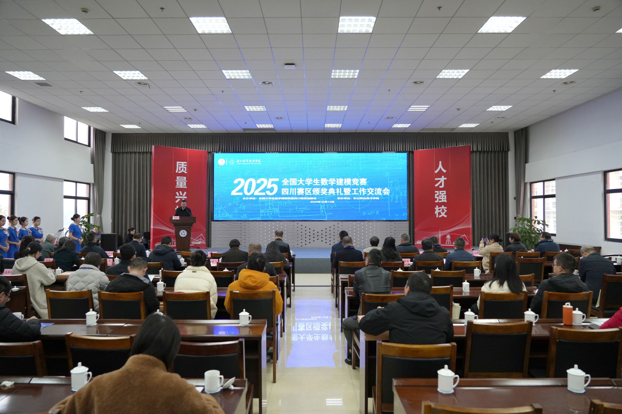 12月12日—14日,由全国大学生数学建模竞赛四川赛区组委会主办、乐山职业技术学院承办的“2025全国大学生数学建模竞赛四川赛区颁奖典礼暨工作交流会”在学校学术交流中心隆重举行。来自全省高校的领导、专家、指导教师代表及获奖学生齐聚一堂,共同见证荣耀时刻,共话数学建模教育高质量发展新篇章。