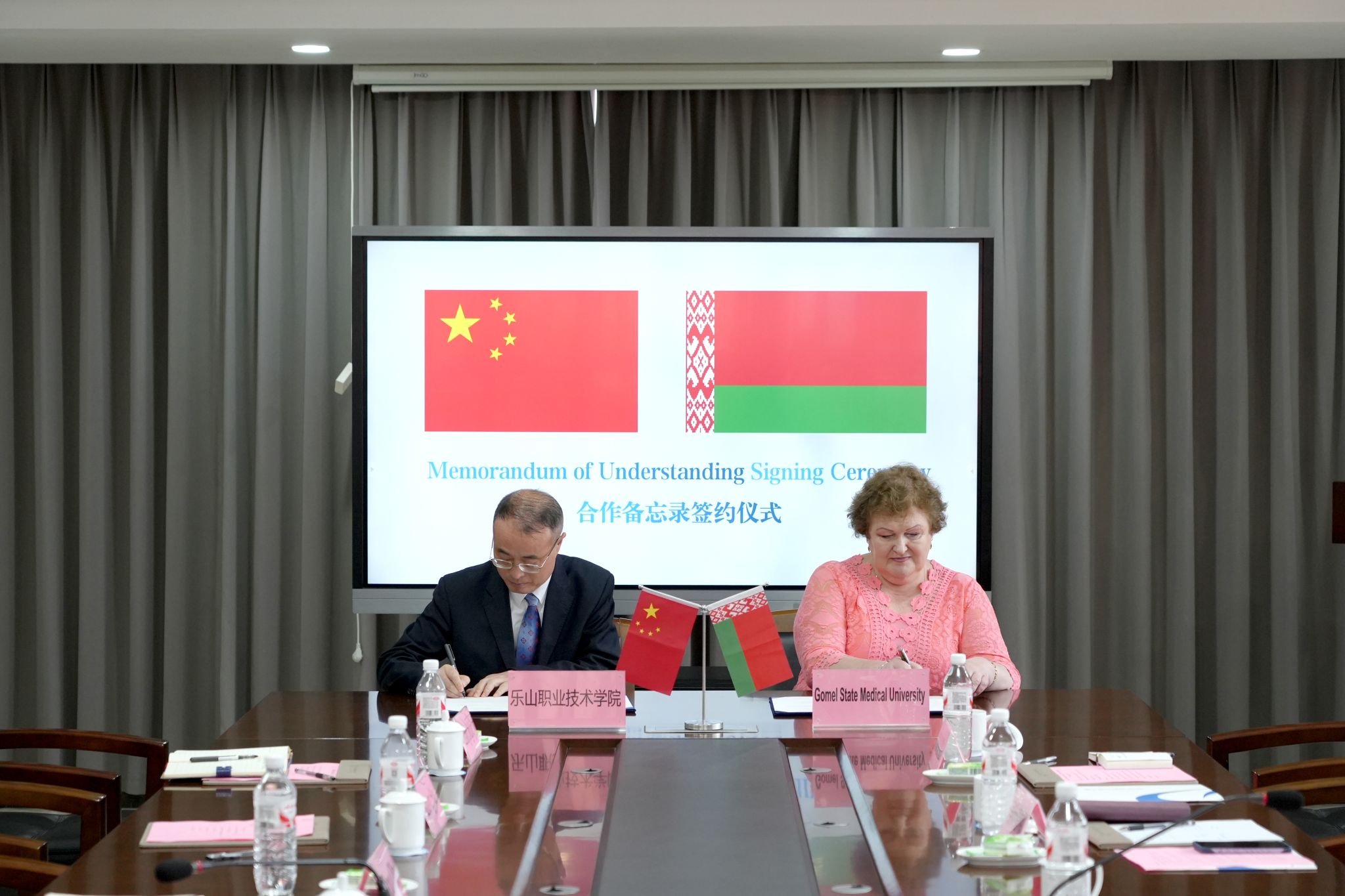 戈梅利国立医科大学副校长斯维特兰娜•阿纳什基娜分享了该校在医学教育、科研创新方面的特色与成就,并表达了强烈的合作意愿。特别指出,双方在医学人才培养和健康服务方面目标高度契合,期待建立长效合作机制,携手共育高水平医学人才,为区域健康事业贡献力量。会谈成果丰硕。 在双方代表的共同见证下,乐山职业技术学院与白俄罗斯戈梅利国立医科大学郑重签署了友好合作框架协议。这份协议不仅标志着两校间正式伙伴关系的建立,更象征着中白两国在医学教育领域务实合作的一次有力实践。副校长周芹、医学学院、护理康养学院和国合处相关负责人参加了此次座谈。