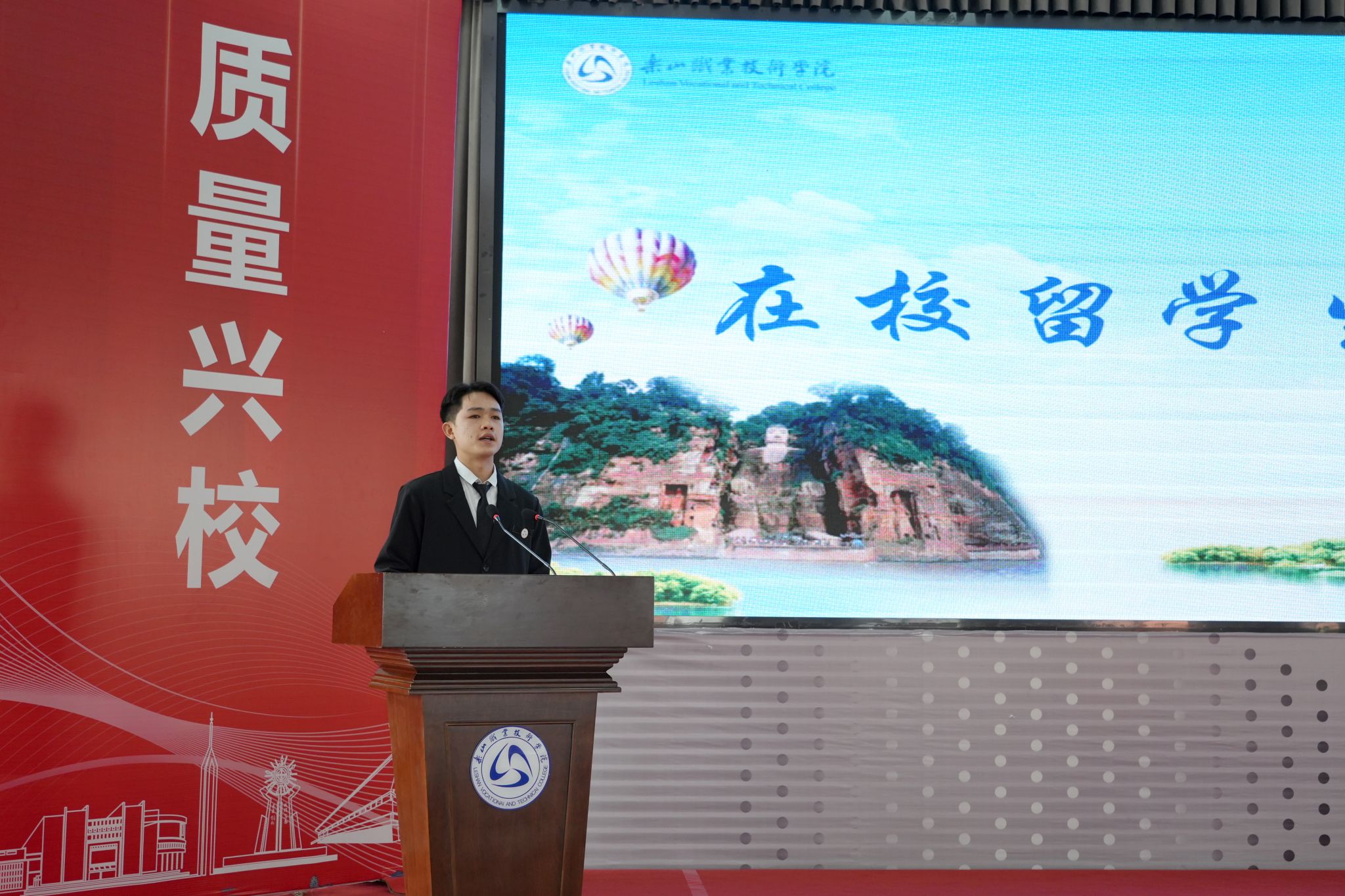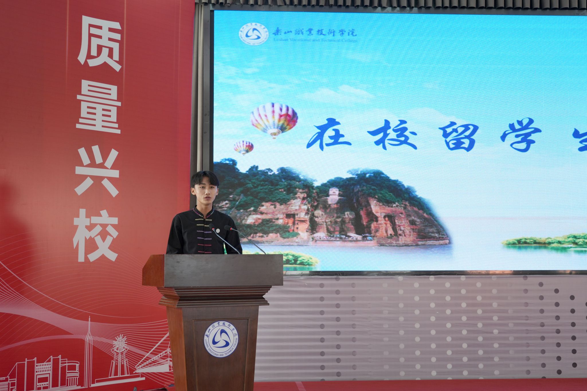 来自素质教育学院的教师代表唐婧结合教学实践,为来华留学生提供了实用的学习与生活建议,表达了全体教师对同学们的全力支持与关怀。来自老挝的在校生代表阿恒分享了在乐山职业技术学院学习生活的收获与体会,为学弟学妹提供了有益借鉴。来自旅游管理专业的新生代表肖平在发言中表达了对未来学业的期待与立志成才的决心。