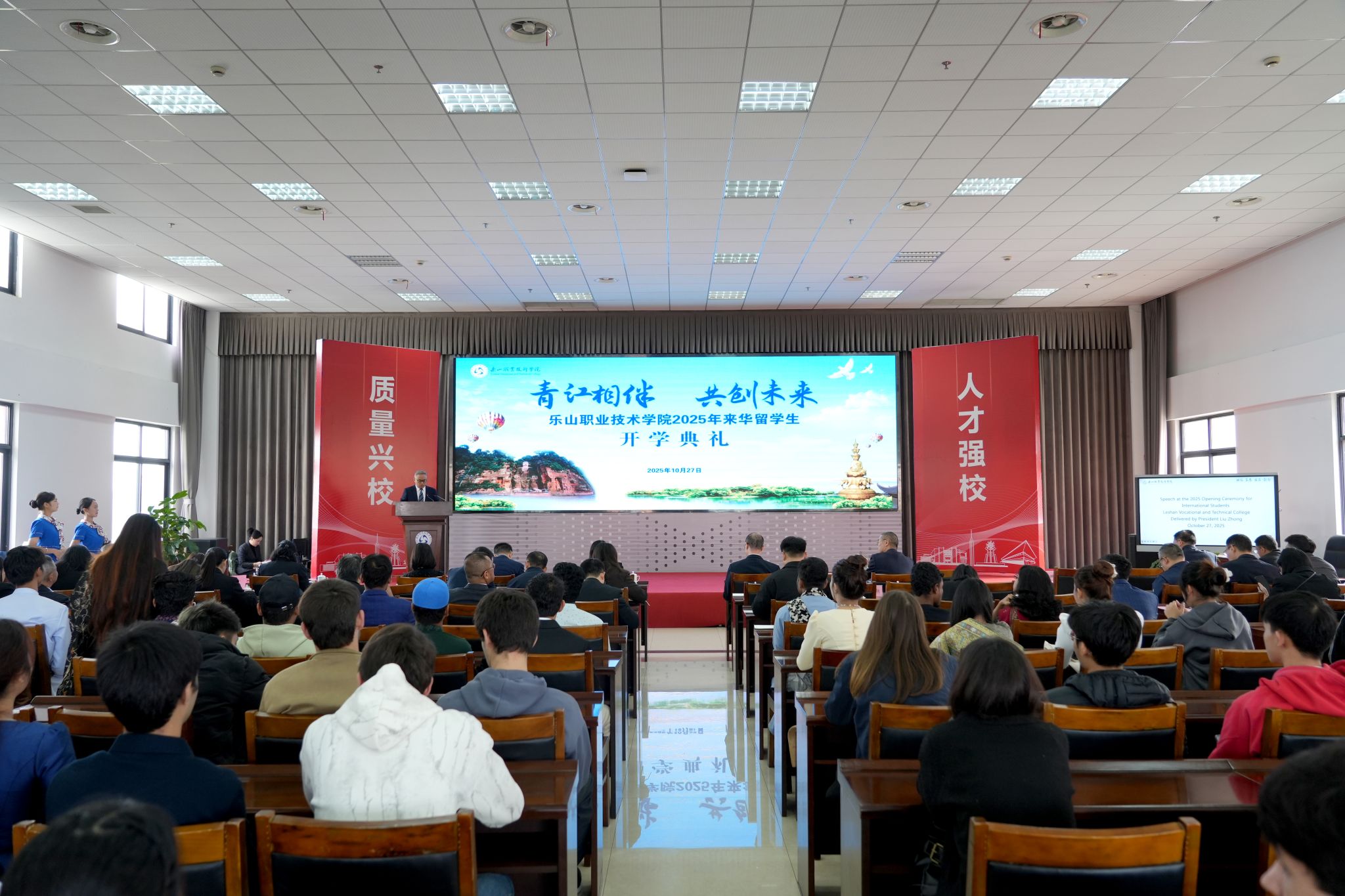 金秋十月,丹桂飘香。10月27日上午,以“青江相伴、共创未来”为主题的乐山职业技术学院2025级来华留学生开学典礼在学术交流中心3004会议室隆重举行。2025年我校共招收来自塔吉克斯坦、柬埔寨、越南等9个国家的86名来华留学生(含交换生),他们分别被录取在旅游管理、电子商务、人工智能技术等10个专业。学校校长刘忠,党委委员、副校长张学河、周芹,相关职能部门及二级学院班子成员、教师代表、辅导员共同出席,开学典礼由张学河主持。