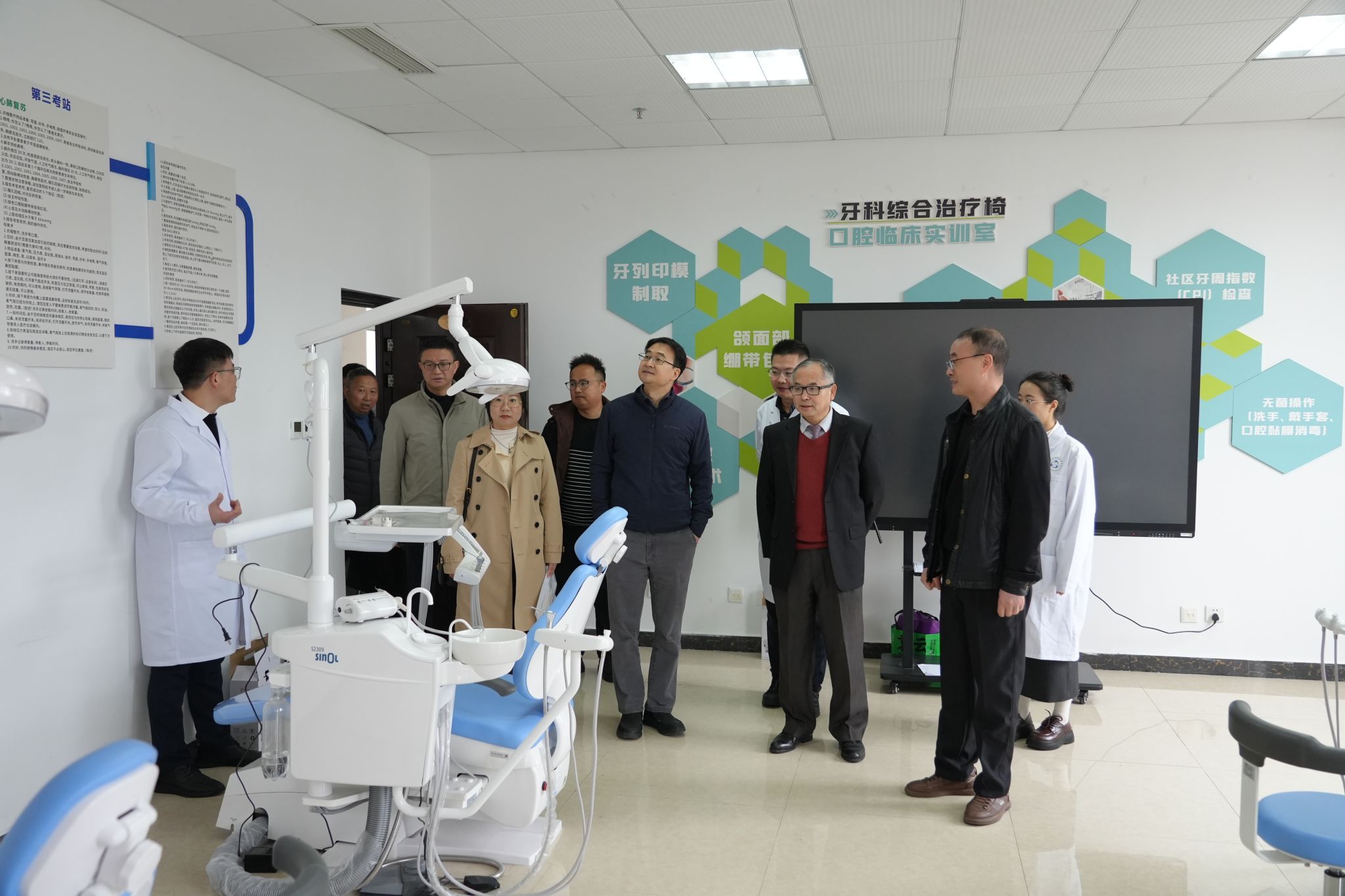 揭牌仪式后,与会嘉宾先后参观了实训基地的各个功能区域,详细了解基地的设施配置、教学模式及诊疗服务能力,对基地 “教、学、做、创、服”一体化的真实职业环境建设给予高度评价。